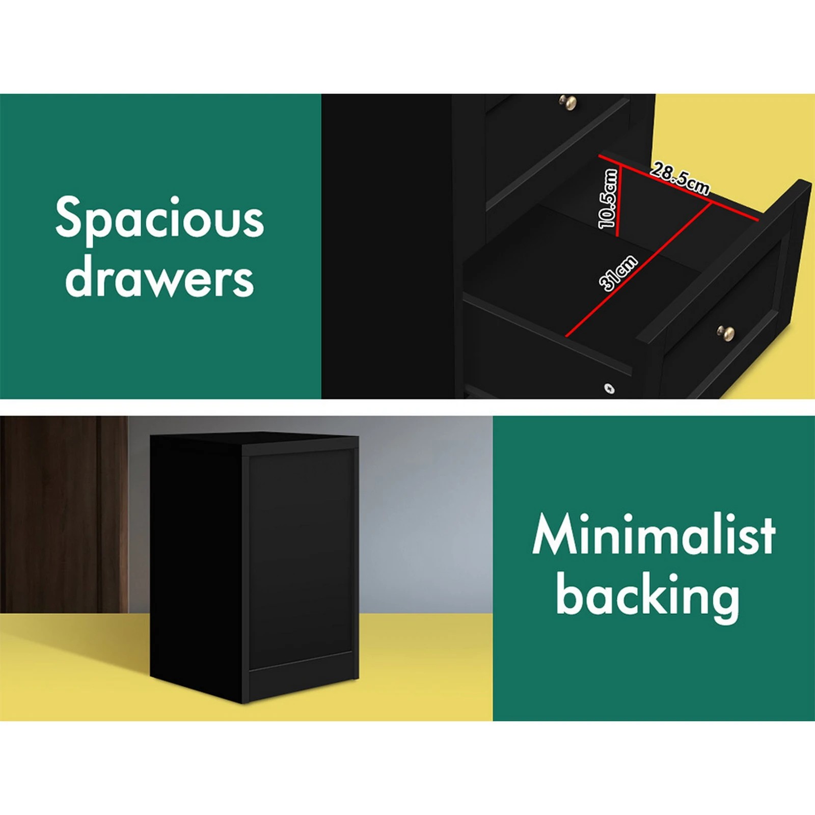 Alfordson Bedside Table Hamptons Storage Nightstand Side End Cabinet - Black