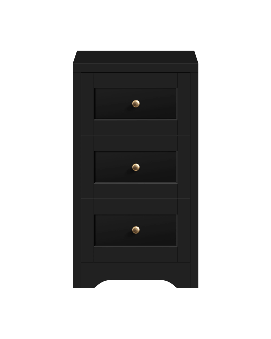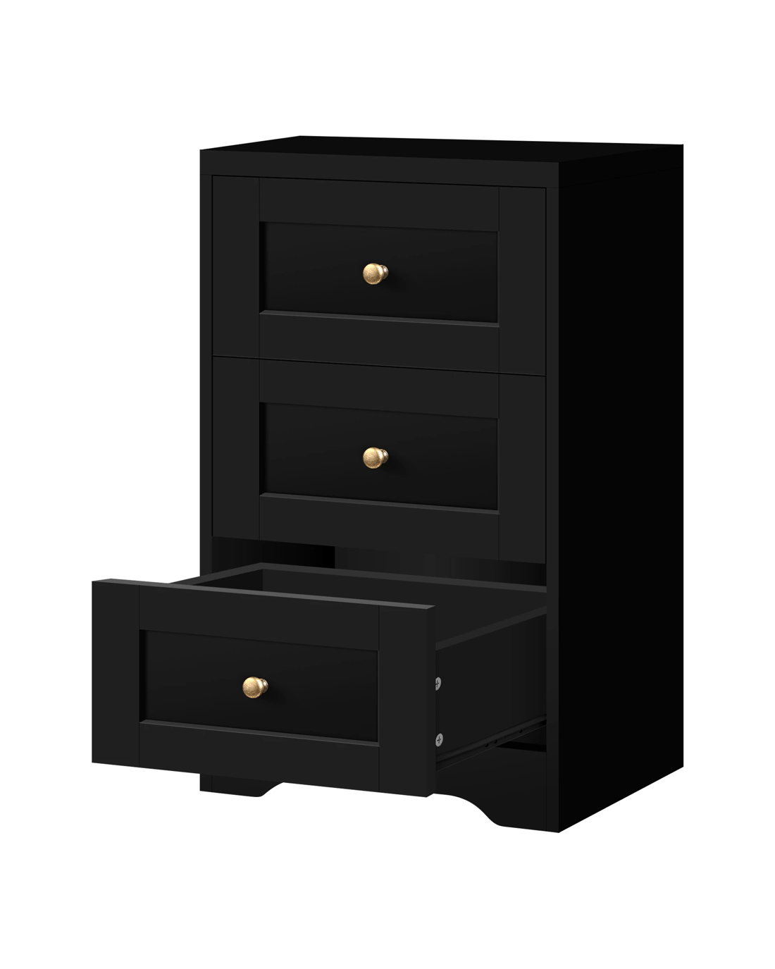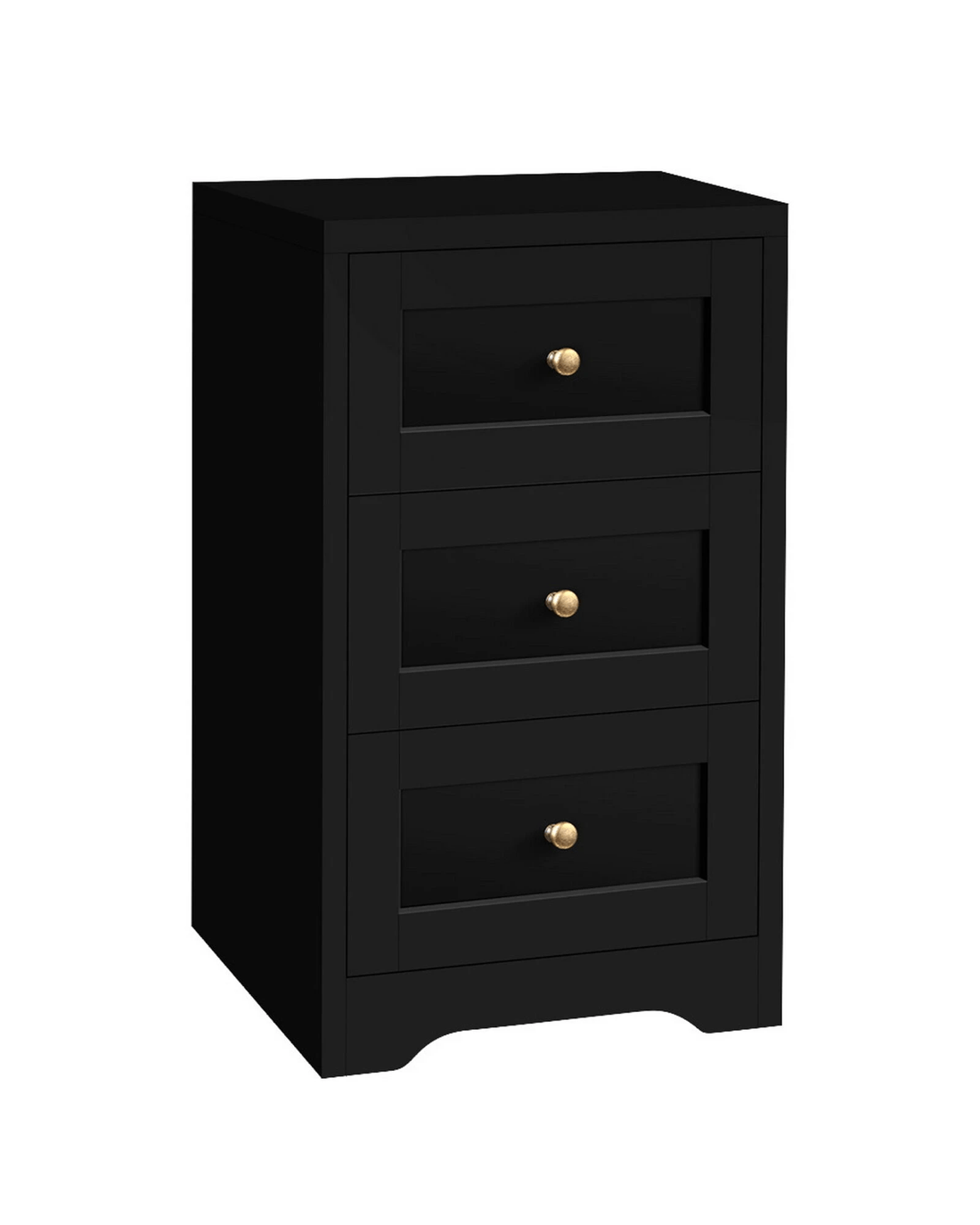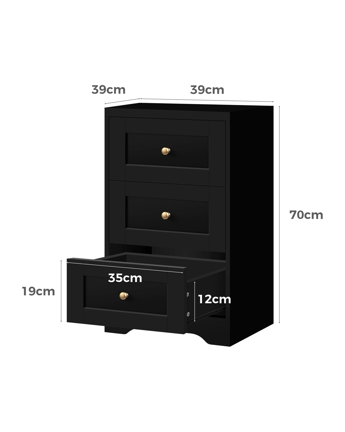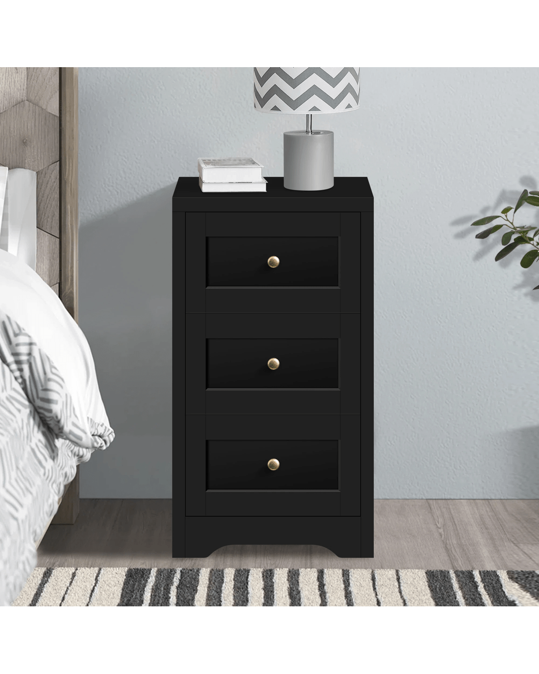 This bedside table can serve as a functional addition at the side of your bed. It provides a surface to place necessary items like a lamp, a laptop, a book, a glass of water, medicine or vitamin pills, or whatever else you may want to keep close by the bed. Not least, featuring 3 spacious drawers, it provides ample storage so that'se items you store away in the drawers won't gather dust.