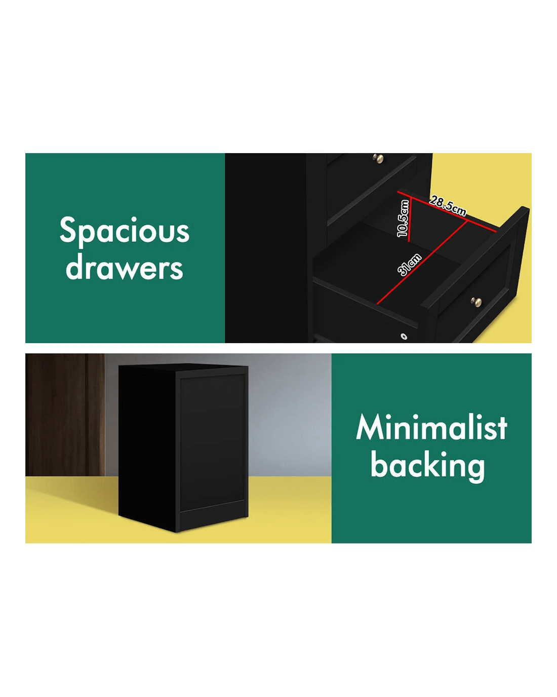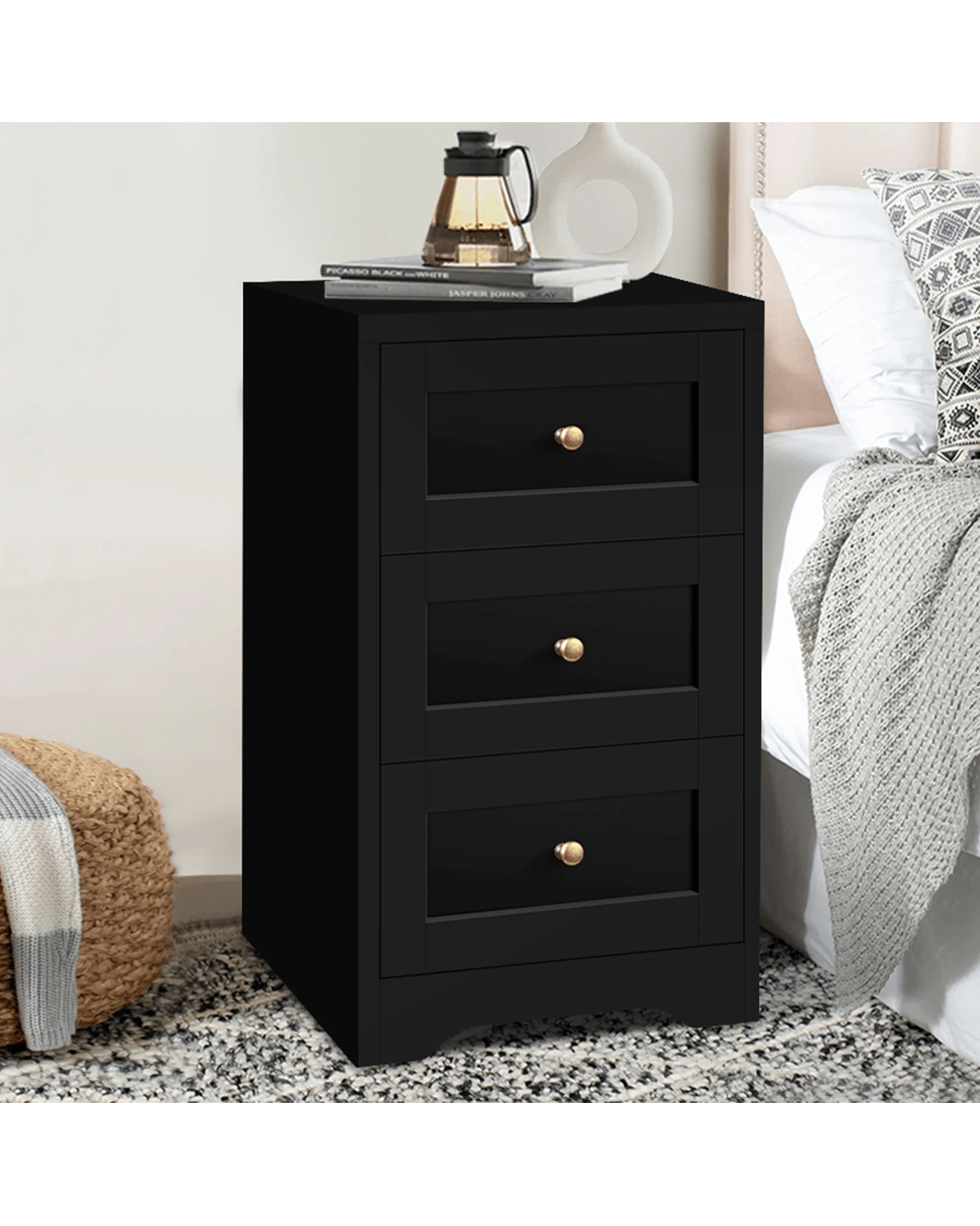 Alfordson Bedside Table Hamptons Storage Nightstand Side End Cabinet - Black