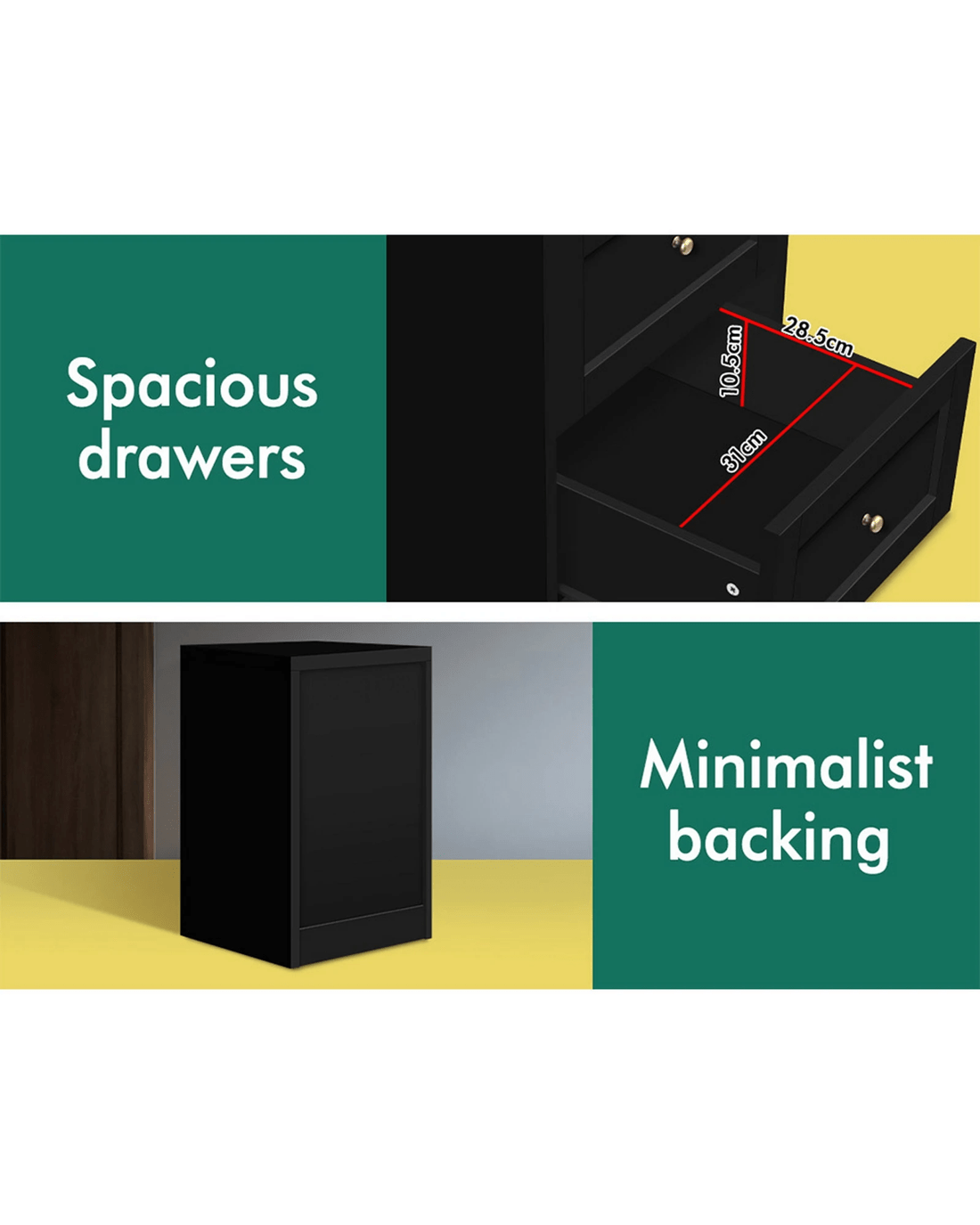Made of superior E1 grade and 15mm thick particle board, this bedside table is designed to be highly durable. Unlike some other sellers, we have no compromise on materials Use - stead of flimsy paper finish, our bedside table is well made with melamine finish. It is not only easy to maintain and clean, but also long lasting and durable. Being functional yet stylish, you will definitely love our bedside table.