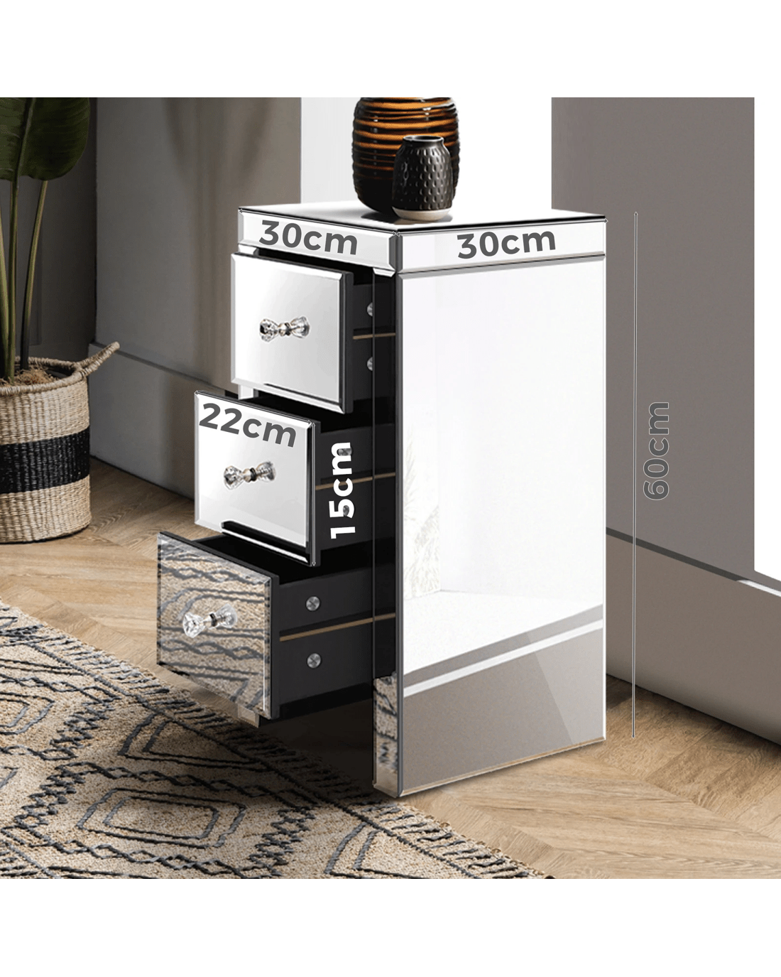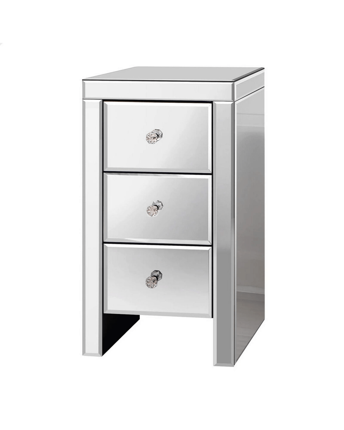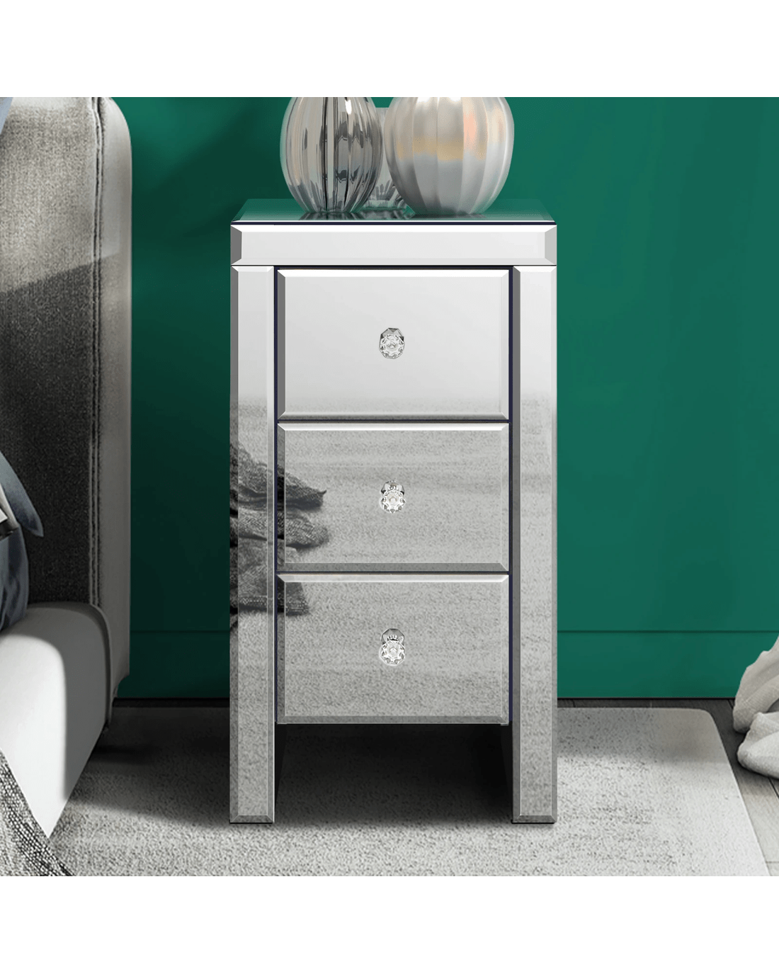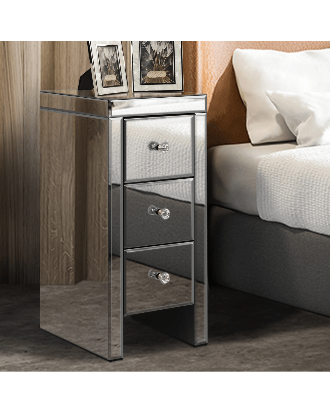 Sold by Aussie Union GroupAlfordson Bedside Table Mirrored Cabinet Nightstand Side End Table Drawers - Silver