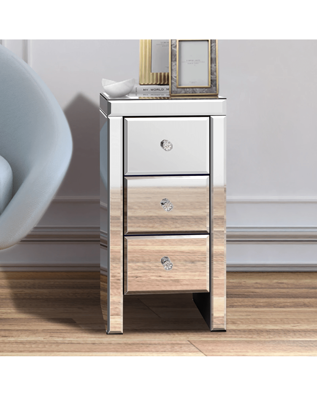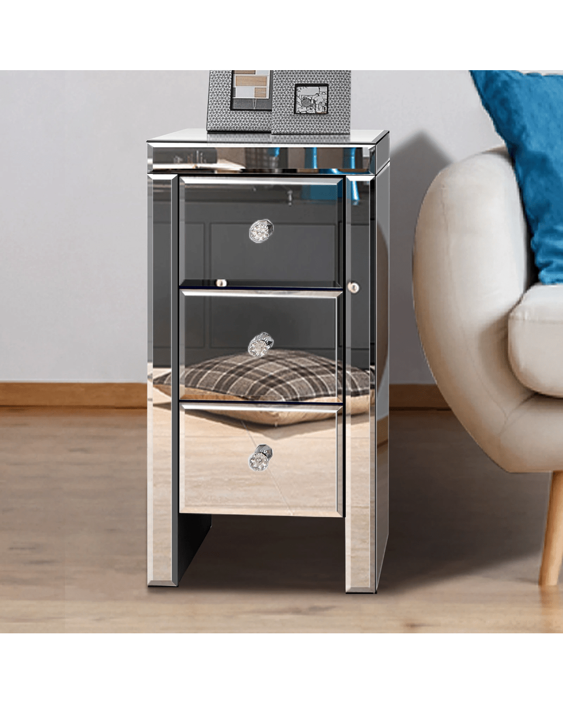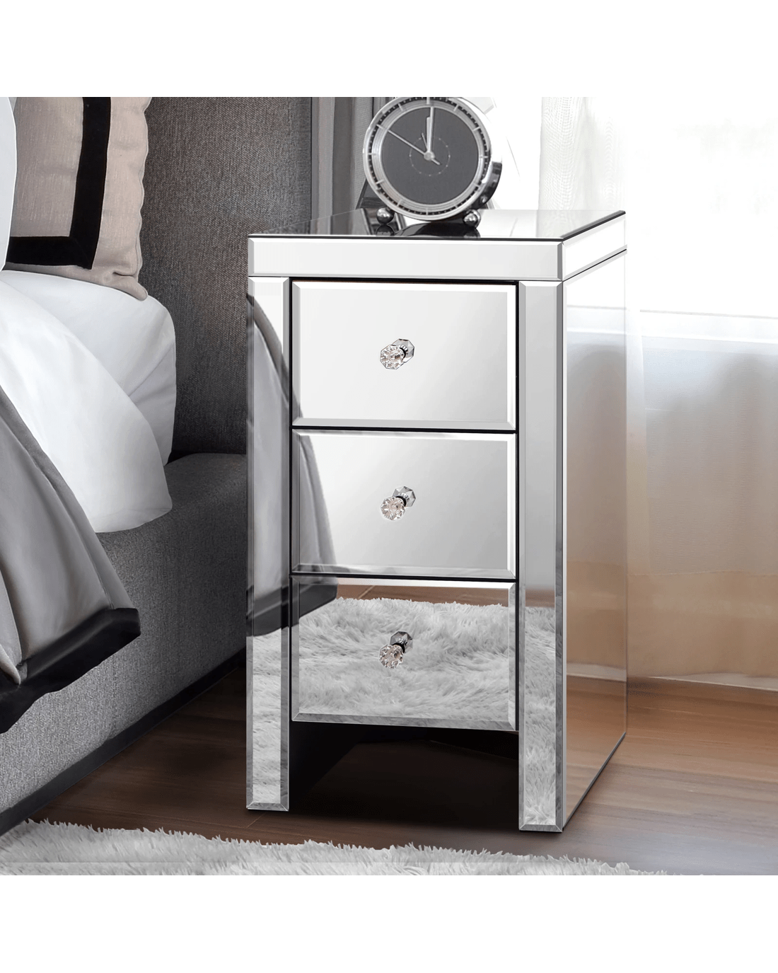 As you may or may not know, most people prefer to have two bedside tables in the bedroom because they help achieve symmetry in the design and increases storage space. Moreover, these unique mirrored tables can be Use - fancy cabinets or luxury side tables. Its clean-cut design will fit perfectly in multiple interior styles, in the meantime, increase the brightness of a room. Being functional yet stylish, you will definitely love our mirrored bedside table.