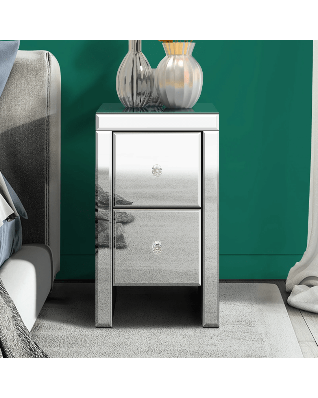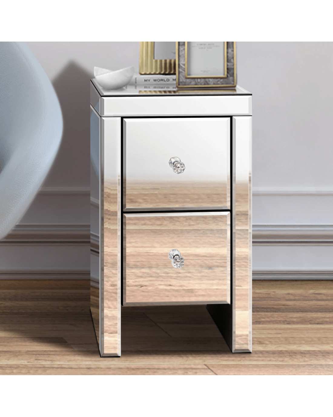 Sold by Aussie Union GroupAlfordson Bedside Table Mirrored Cabinet Nightstand Side End Table Drawers - Silver