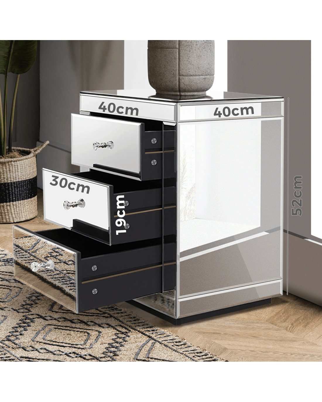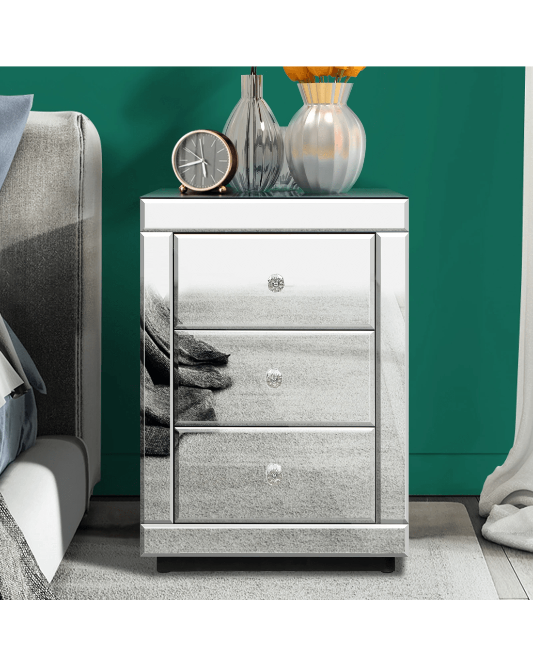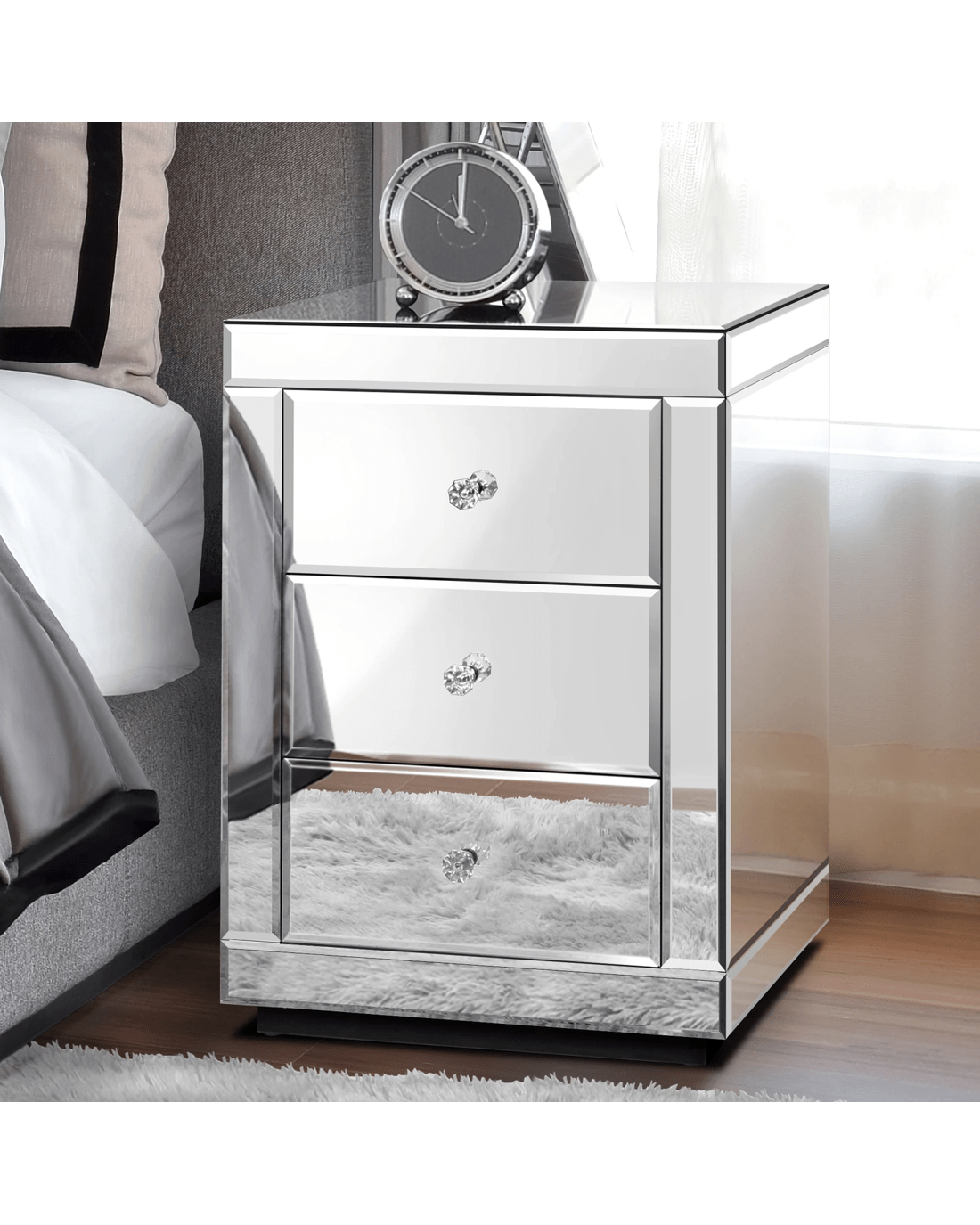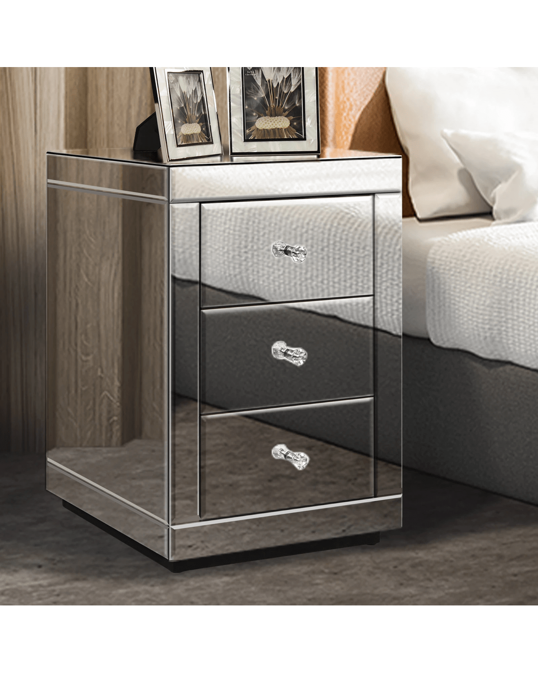 Sold by Aussie Union GroupAlfordson Bedside Table Mirrored Cabinet Nightstand Side End Table Drawers - Silver