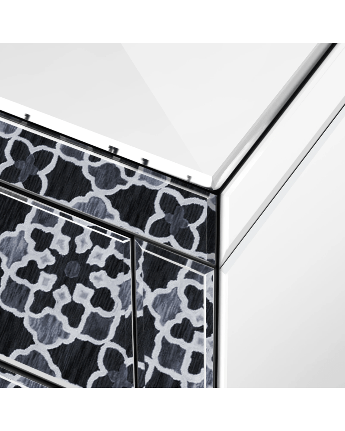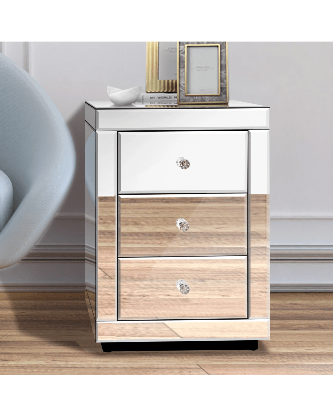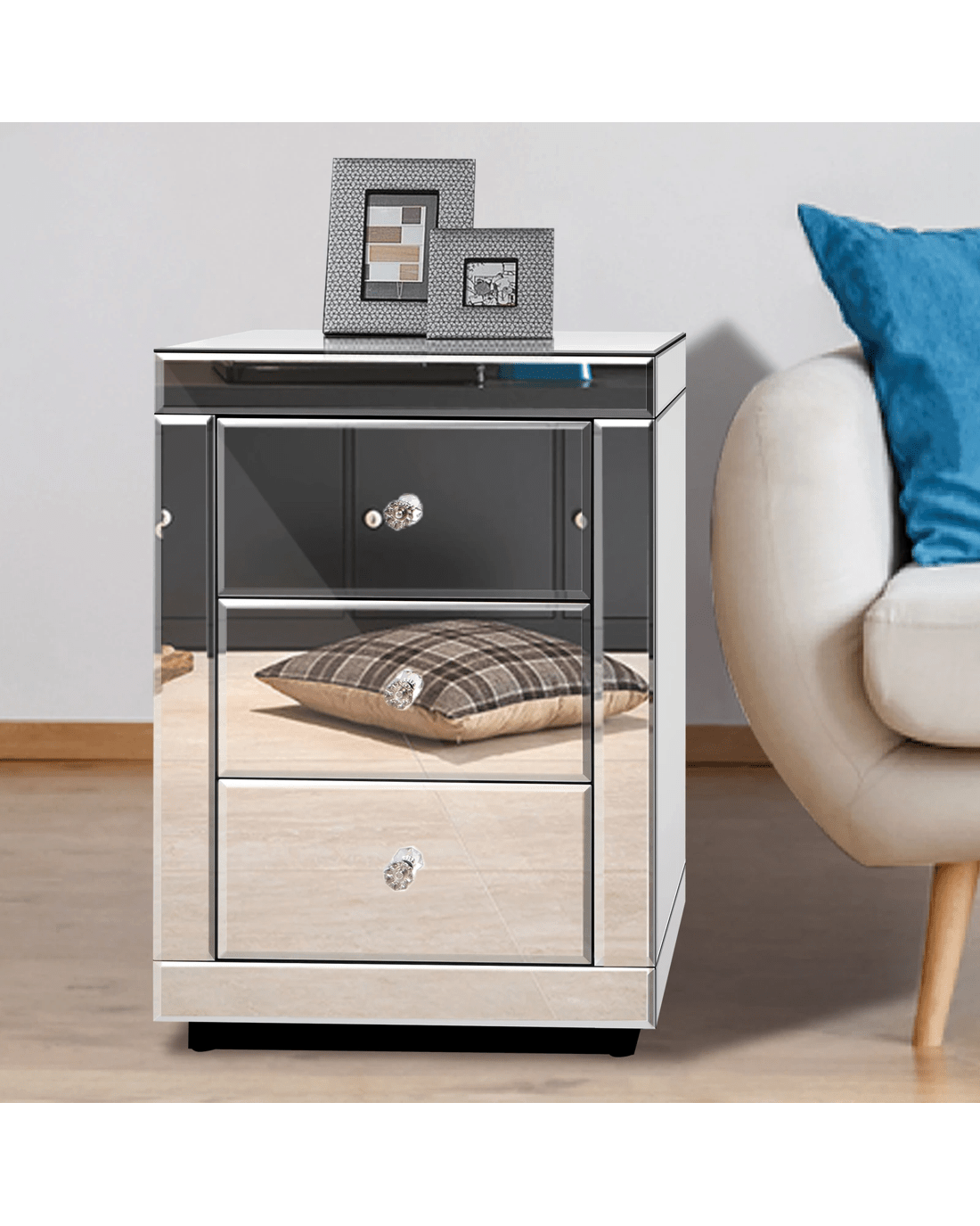 As you may or may not know, most people prefer to have two bedside tables in the bedroom because they help achieve symmetry in the design and increases storage space. Moreover, these unique mirrored tables can be Use - fancy cabinets or luxury side tables. Its clean-cut design will fit perfectly in multiple interior styles, in the meantime, increase the brightness of a room. Being functional yet stylish, you will definitely love our mirrored bedside table.
