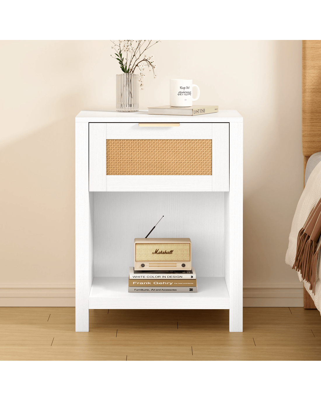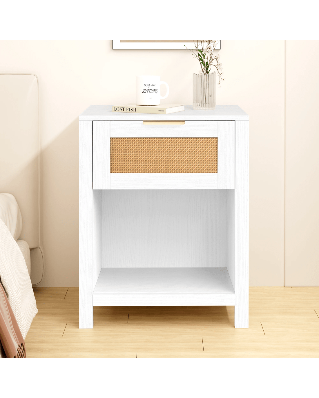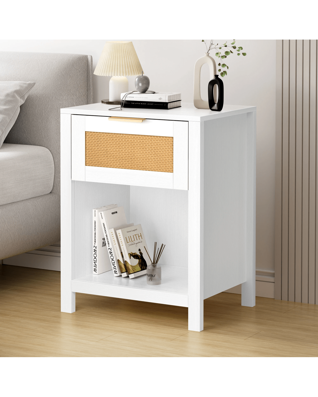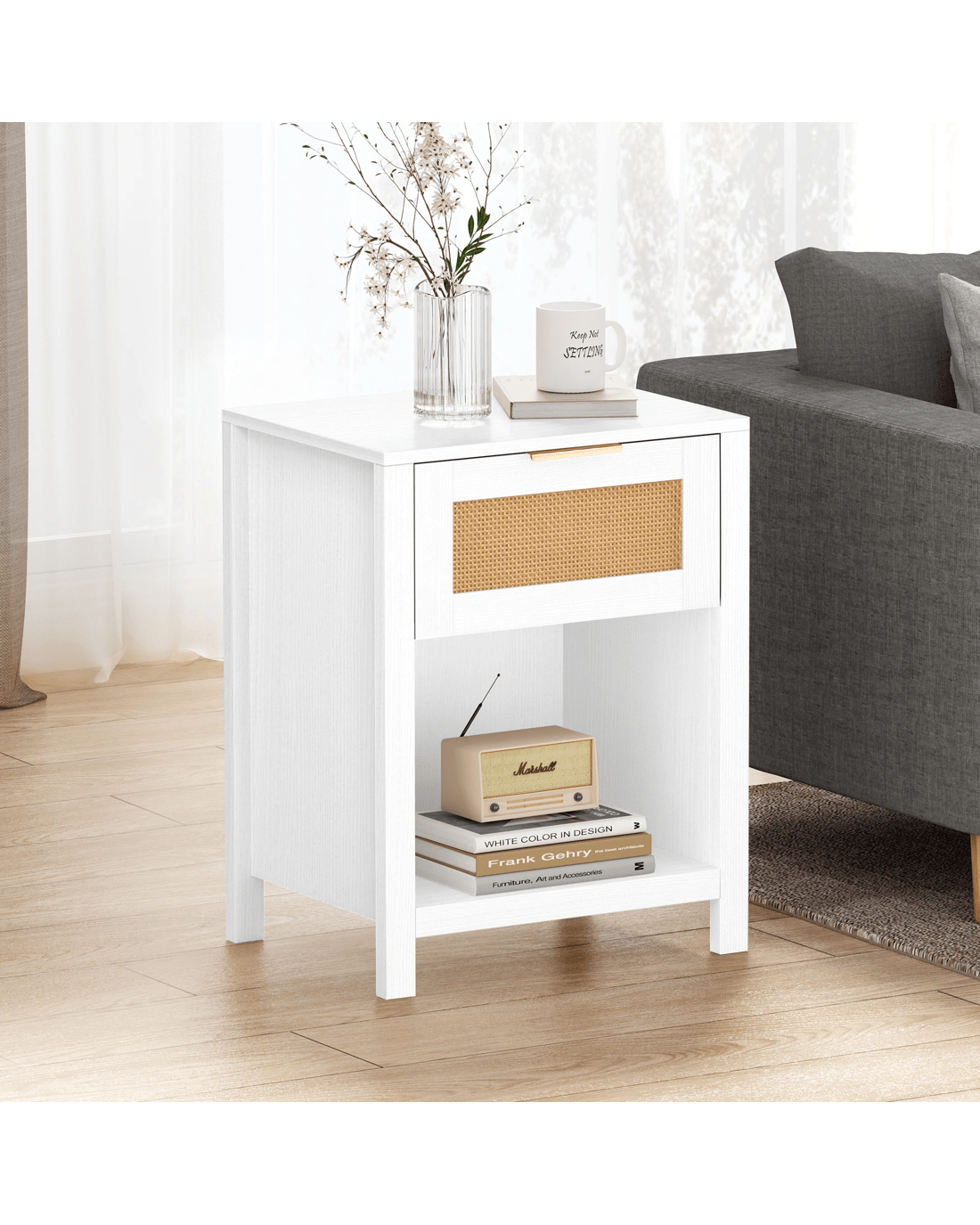Alfordson Bedside Table Nightstand Side End 1 Drawer Storage Shelf - White