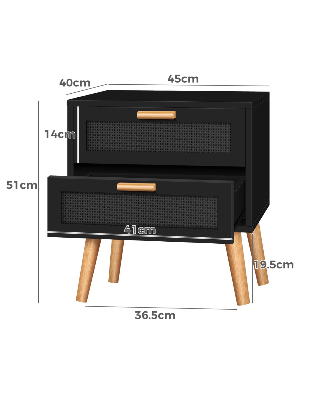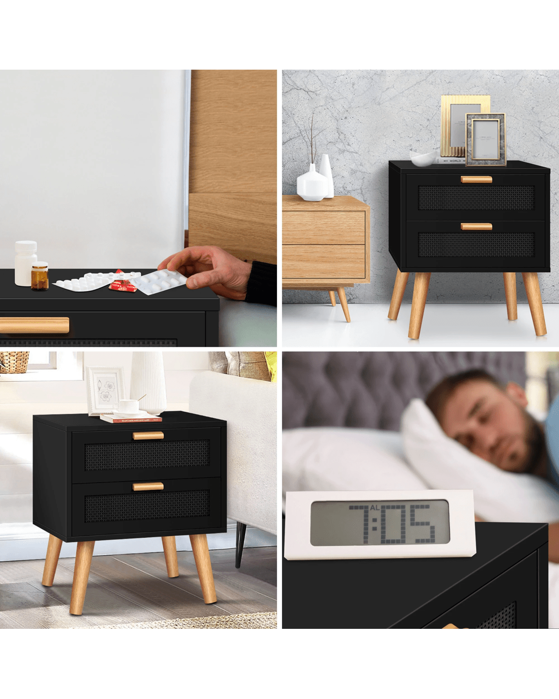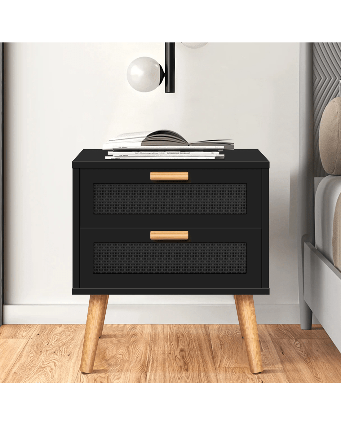Sold by Aussie Union GroupAlfordson Bedside Table Nightstand Side Storage Cabinet Boho Rattan - Black
