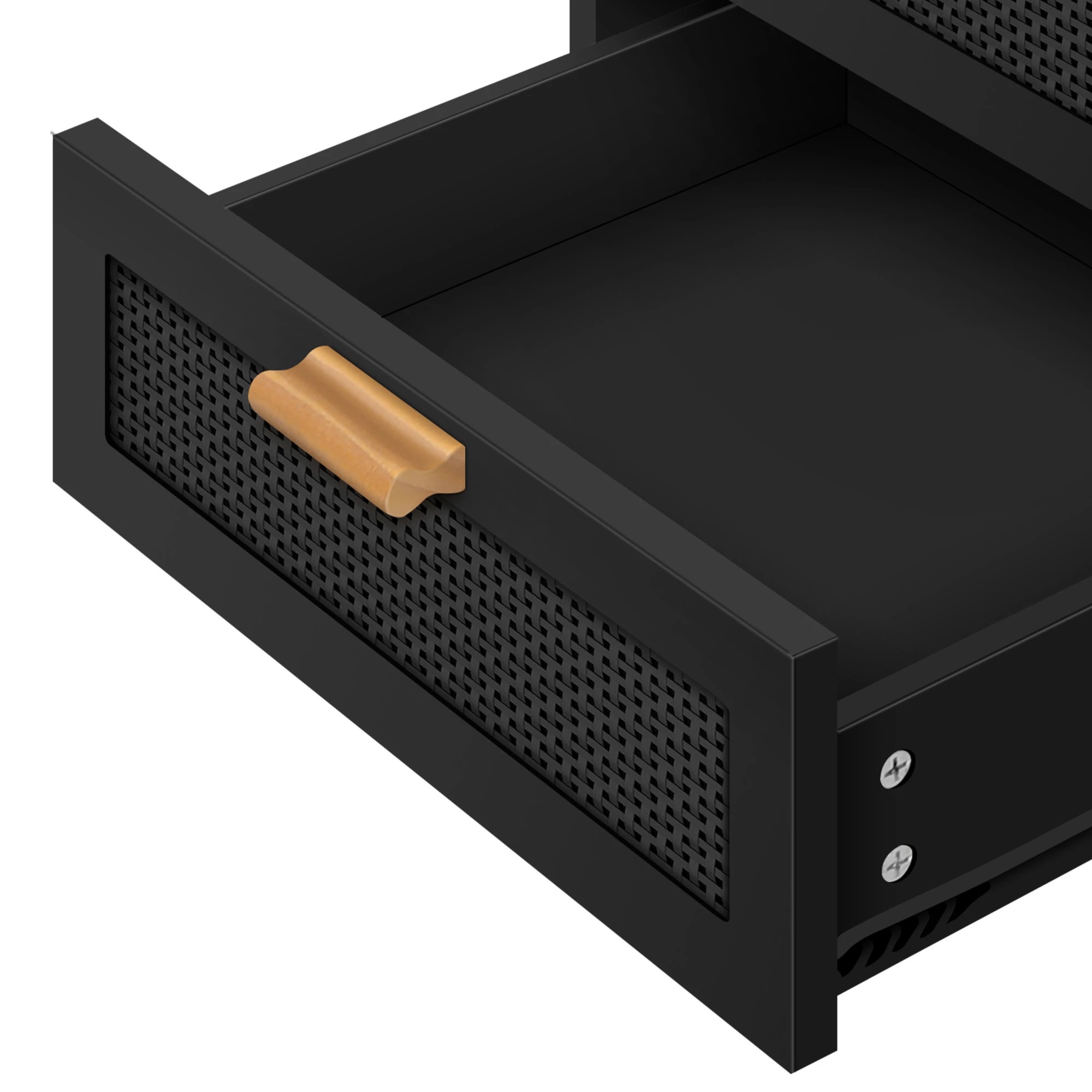 Alfordson Bedside Table Nightstand Side Storage Cabinet Boho Rattan - Black