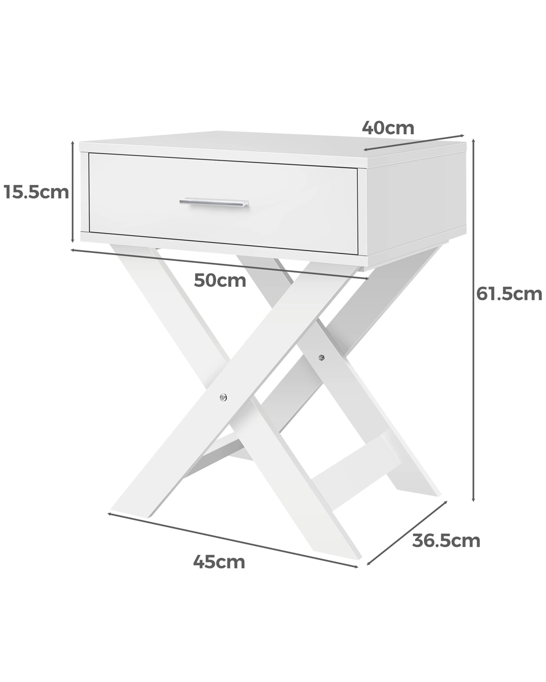 Inspired by classic French country style, this bedside table can serve as a functional addition at the side of your bed. It provides a surface to place necessary items like a lamp, a laptop, a book, a glass of water, medicine or vitamin pills, or whatever else you may want to keep close by the bed. Not least, featuring a spacious drawer, it provides ample storage so that'se items you store away in the drawers won't gather dust.