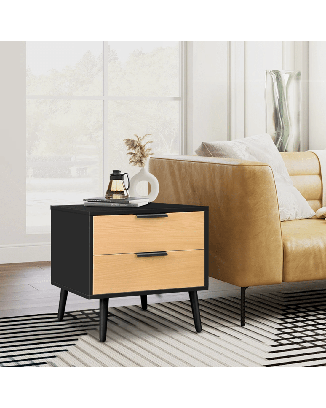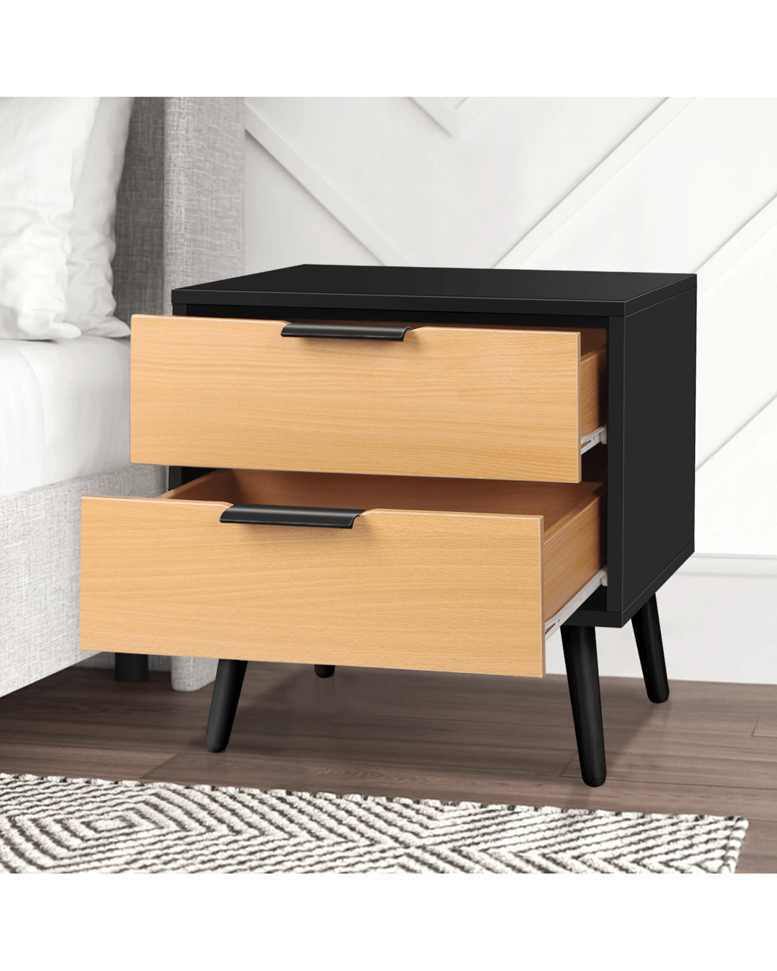 Sold by Aussie Union GroupAlfordson Bedside Table Nightstand Side Storage Cabinet Scandinavian - Black