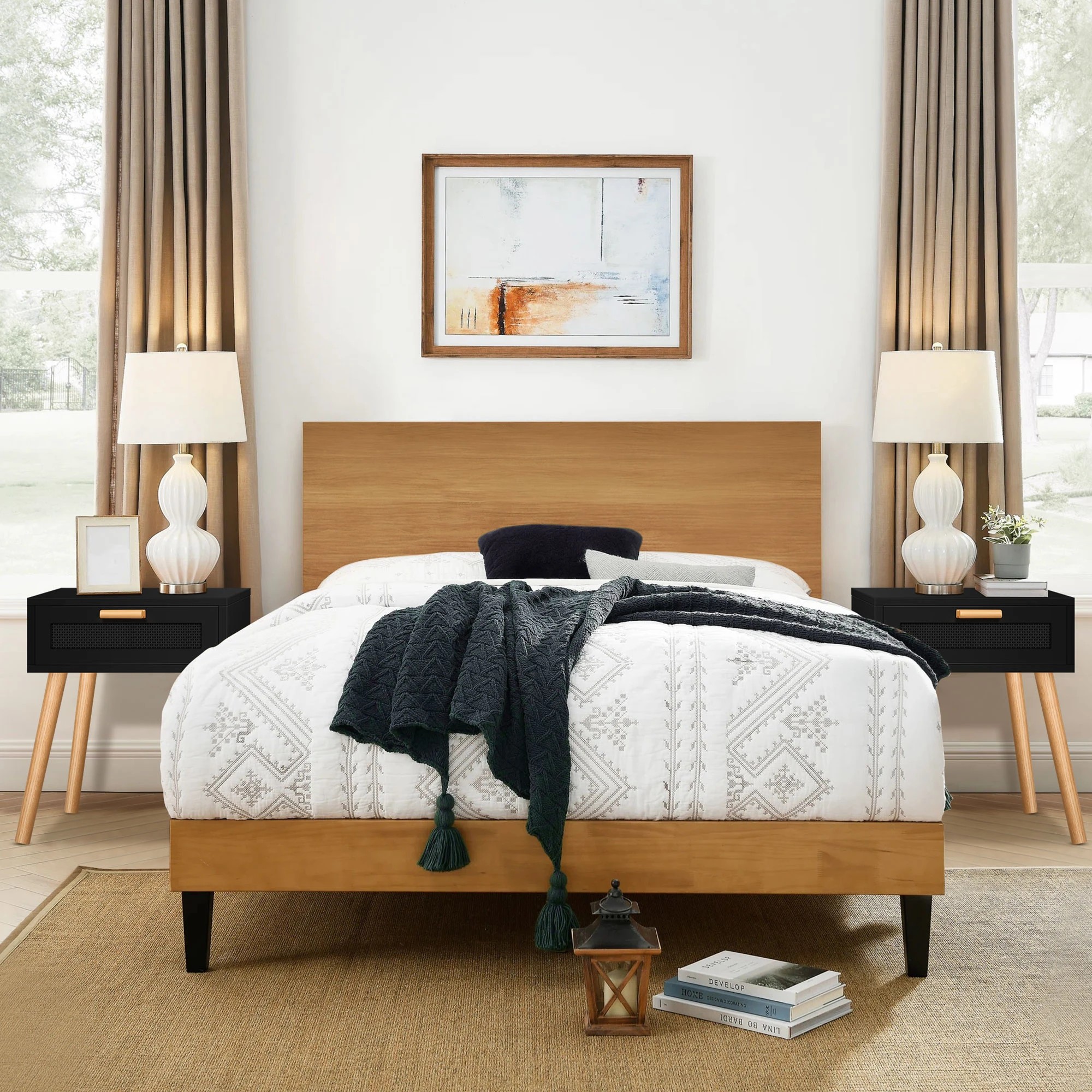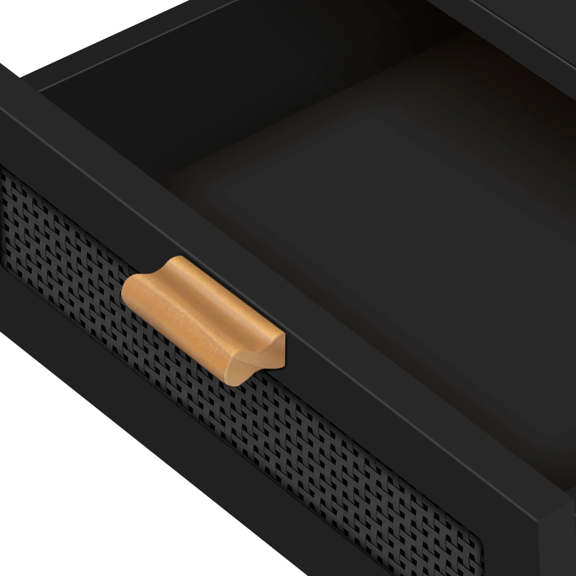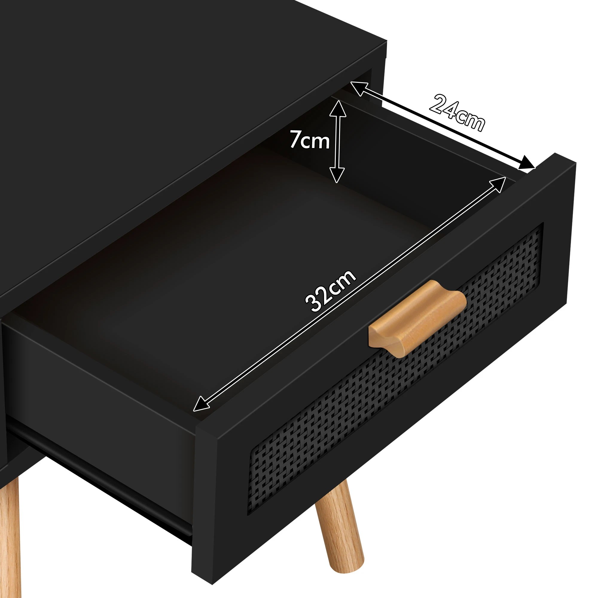 Alfordson Bedside Table Nightstand Side Storage Drawer Wooded Rattan - Black