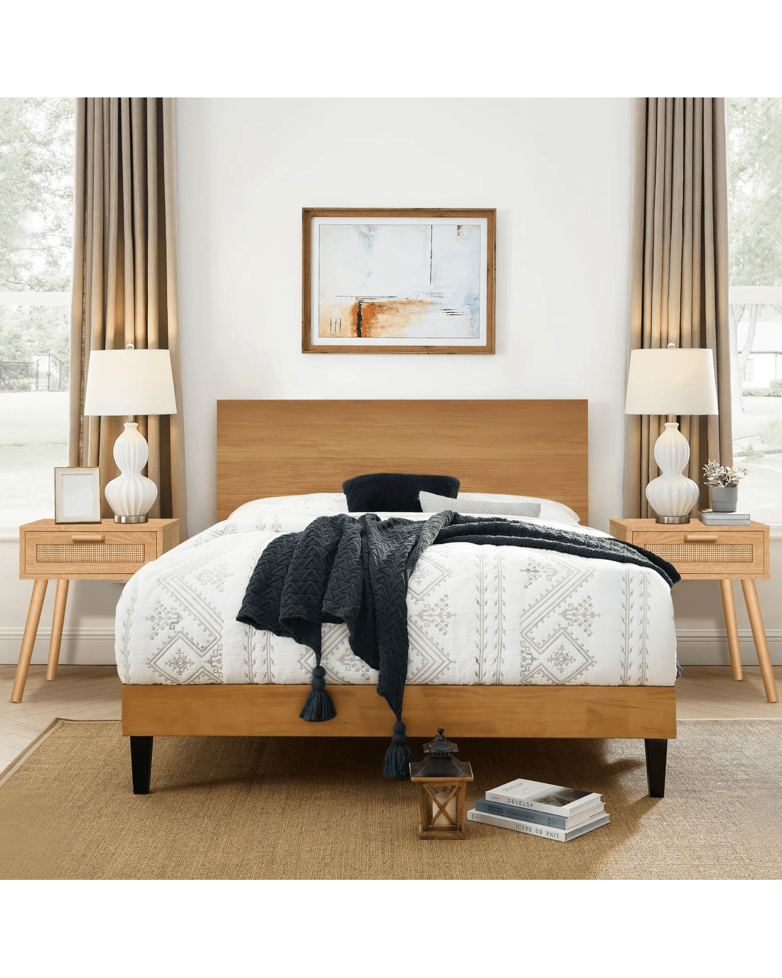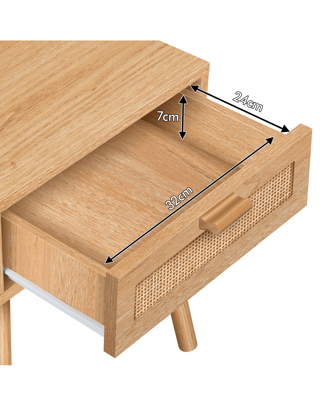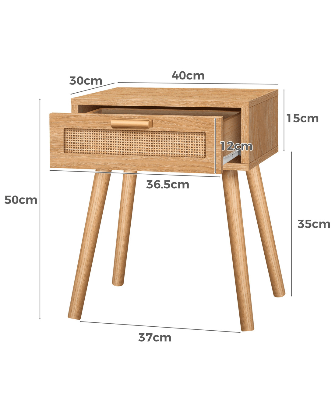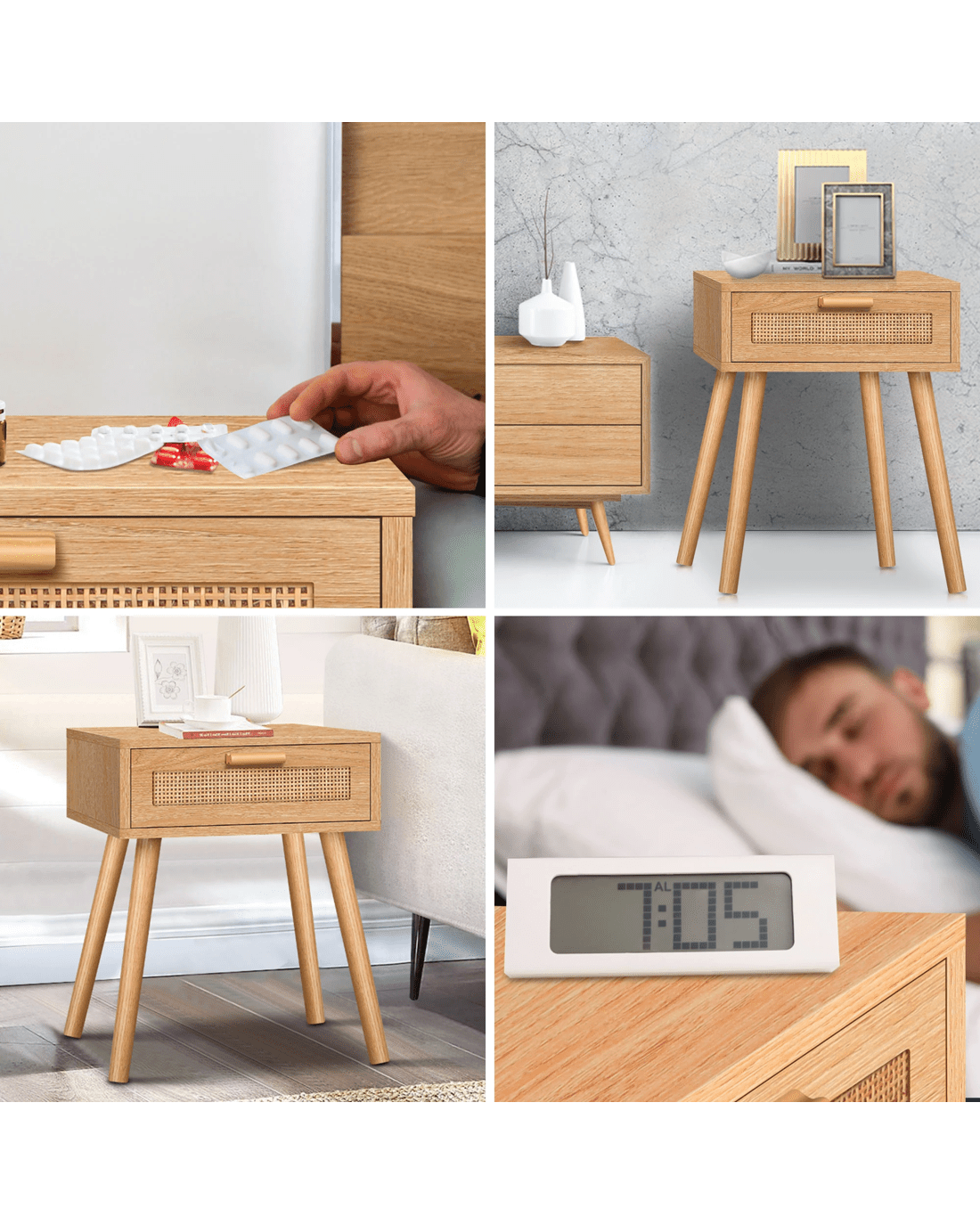 Sold by Aussie Union GroupAlfordson Bedside Table Nightstand Side Storage Drawer Wooded Rattan - Oak