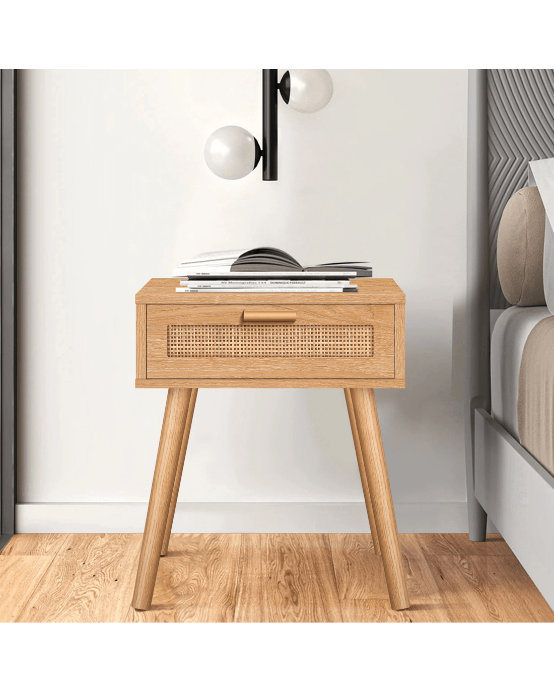 Inspired by extraordinary and authentic Boho style design, this bedside table can serve as a functional addition at the side of your bed. It provides a surface to place necessary items like a lamp, a laptop, a book, a glass of water, medicine or vitamin pills, or whatever else you may want to keep close by the bed. It also features one spacious drawer, providing ample storage so that'se items you store away in the drawers won't gather dust.