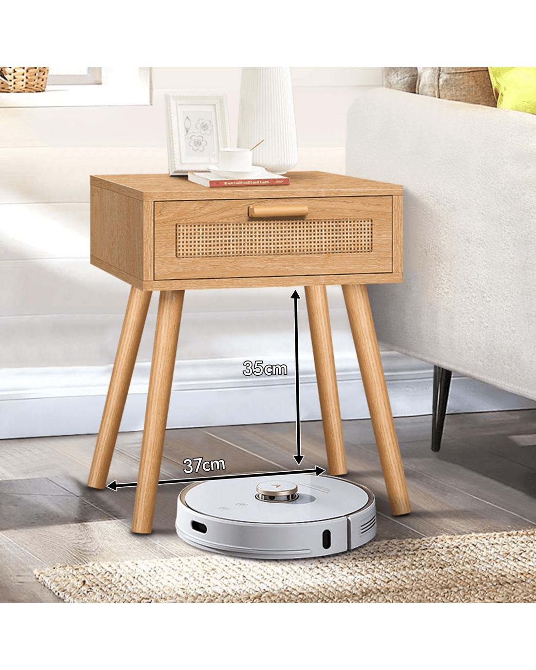 Made of superior E1 grade and 15mm thick particle board, this bedside table is designed to be highly durable. Unlike some other sellers, we have no compromise on materials Use - stead of flimsy paper finish, our bedside table is well made with melamine finish. It is not only easy to maintain and clean, but also long lasting and durable. Equipped with solid legs, this bedside table offers ample clearance for your robot vacuum to manoeuvre underneath, ensuring efficient and thorough cleaning. Being functional yet stylish, you will definitely love our bedside table.