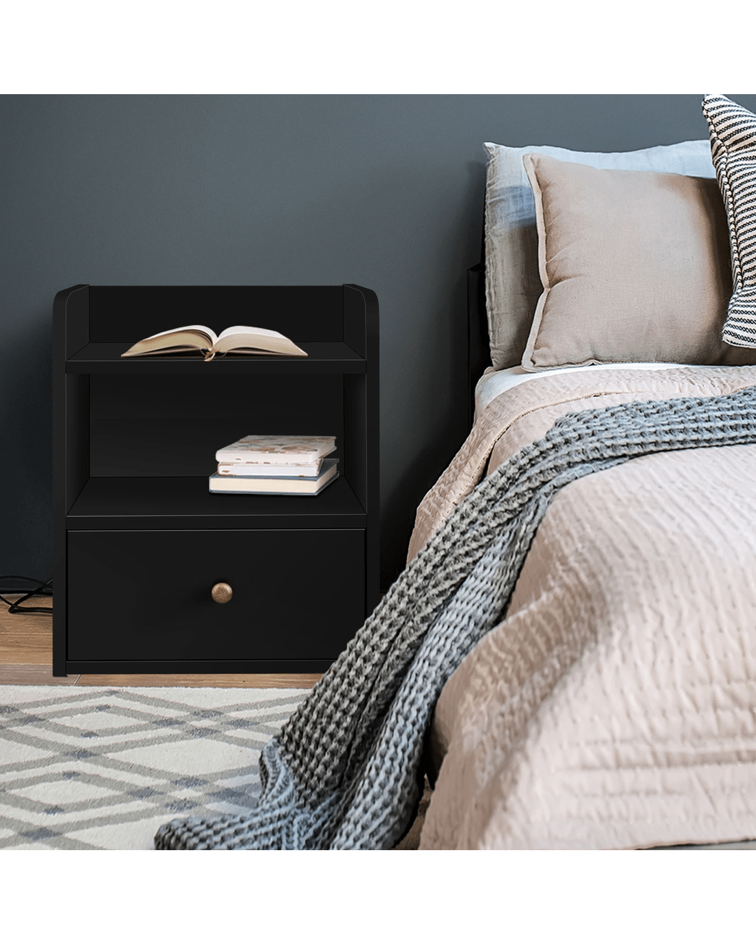 Sold by Aussie Union GroupAlfordson Bedside Table Nightstand Storage Cabinet Side End Drawers - Black