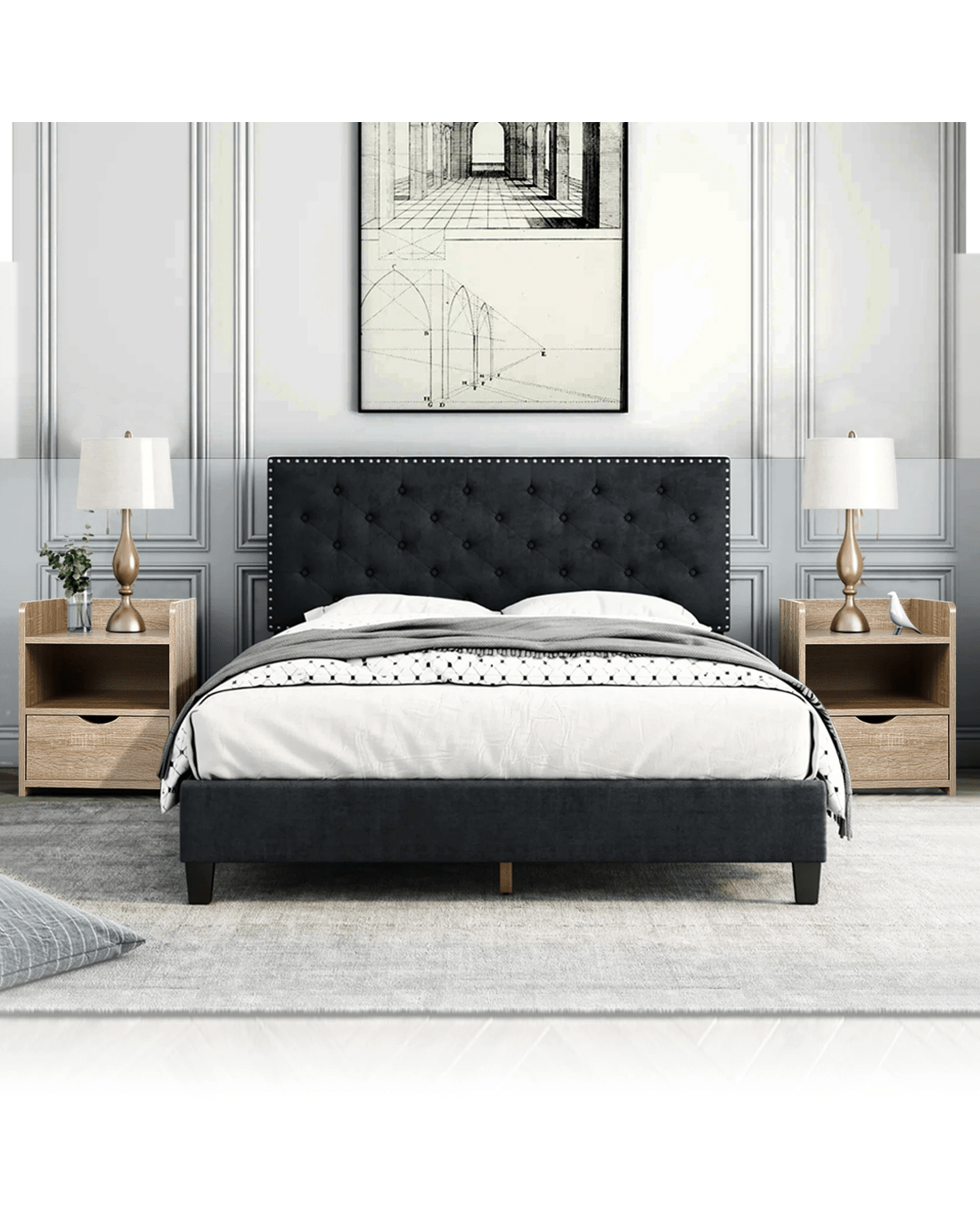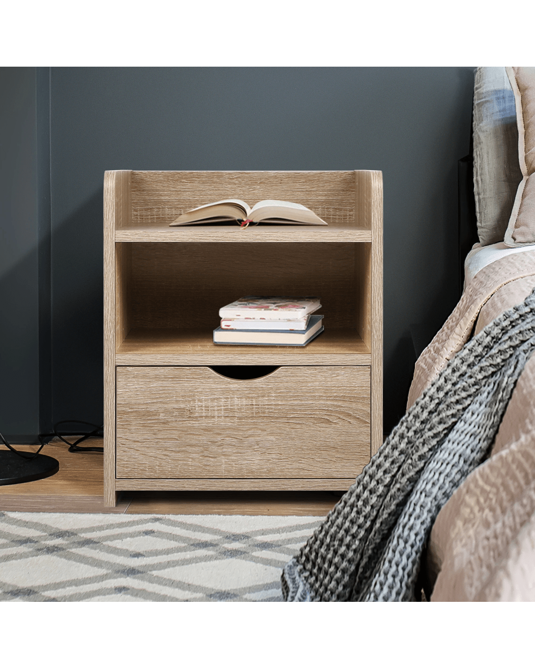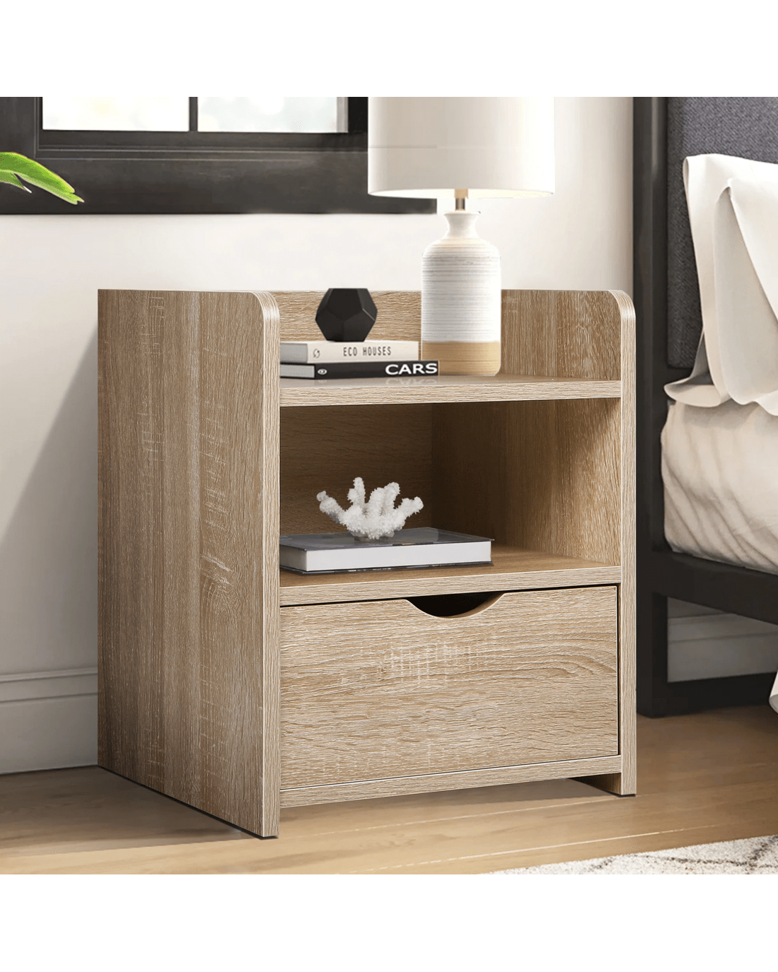 Alfordson Bedside Table Nightstand Storage Cabinet Side End Drawers - Wood