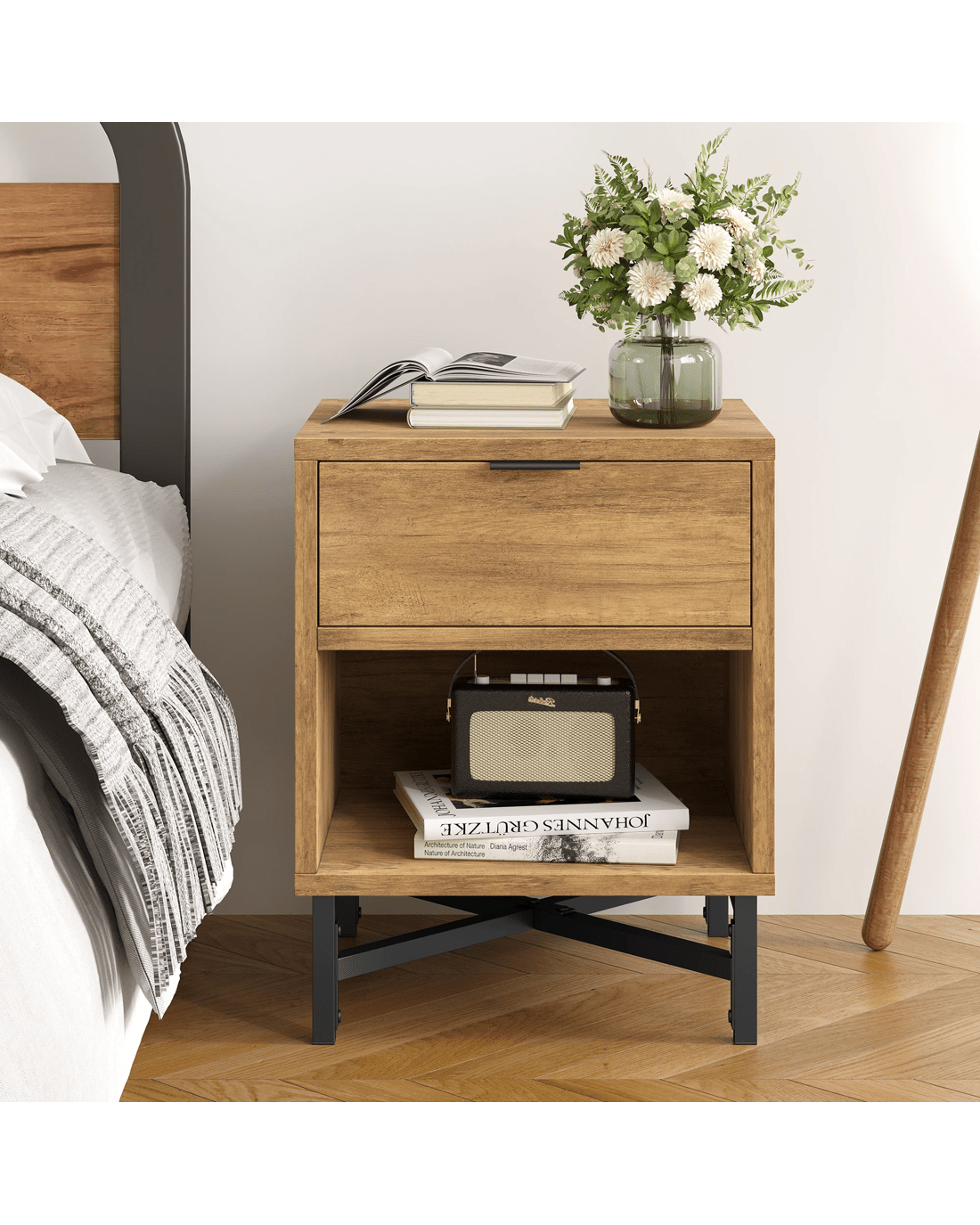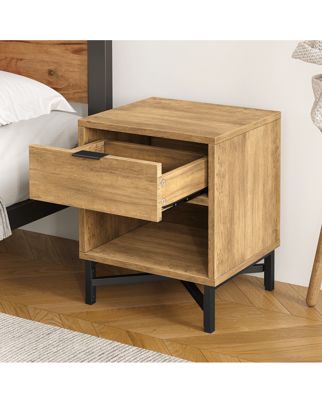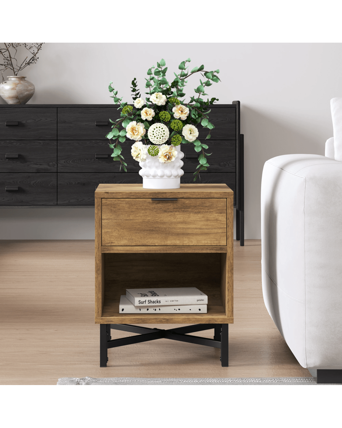 Alfordson Bedside Table Retro Nightstand Side Cabinet Storage Shelf - Brown