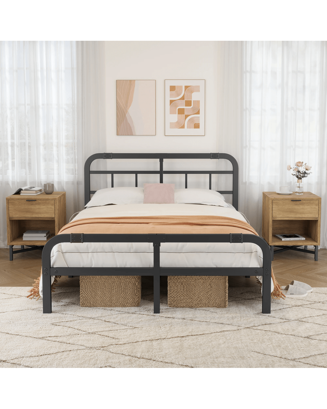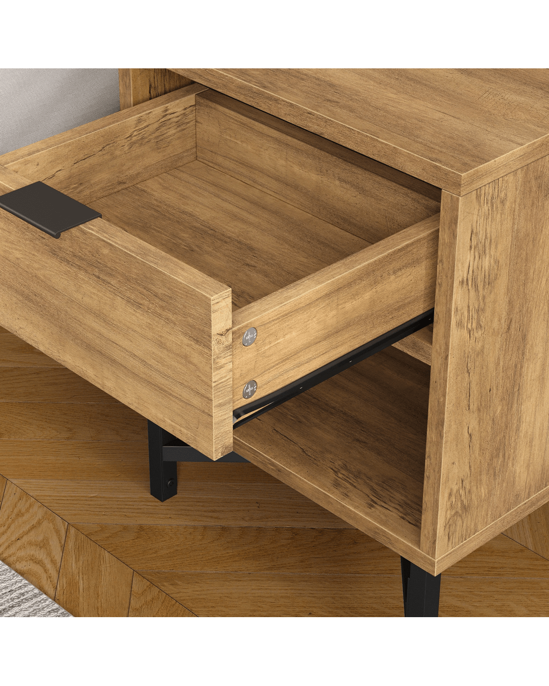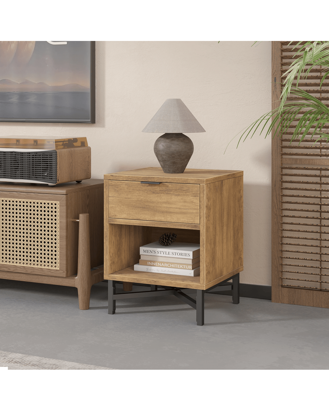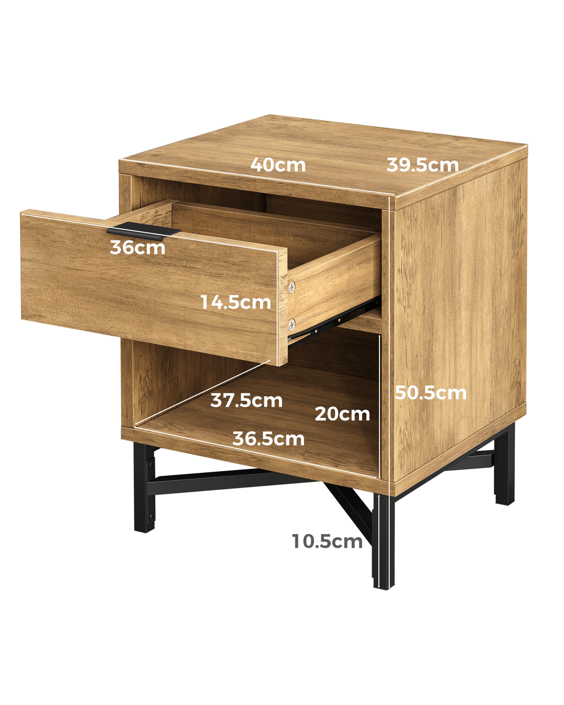 Alfordson Bedside Table Retro Nightstand Side Cabinet Storage Shelf - Brown