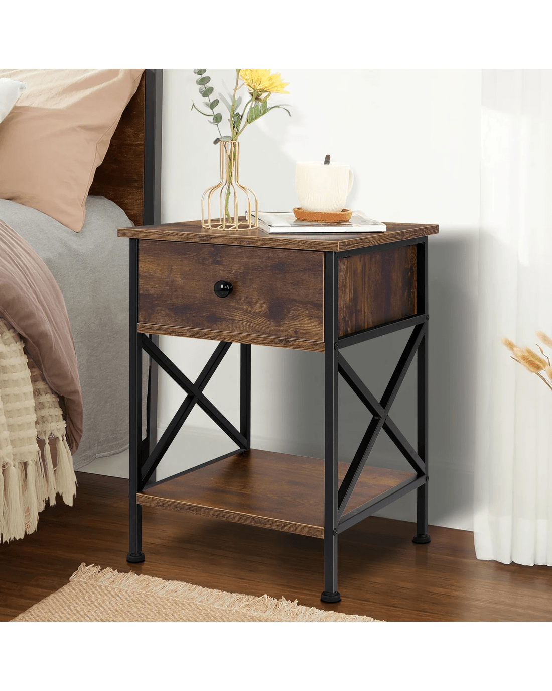 Sold by Aussie Union GroupAlfordson Bedside Table Retro Wooden Nightstand Vintage Storage Side Cabinet - Brown