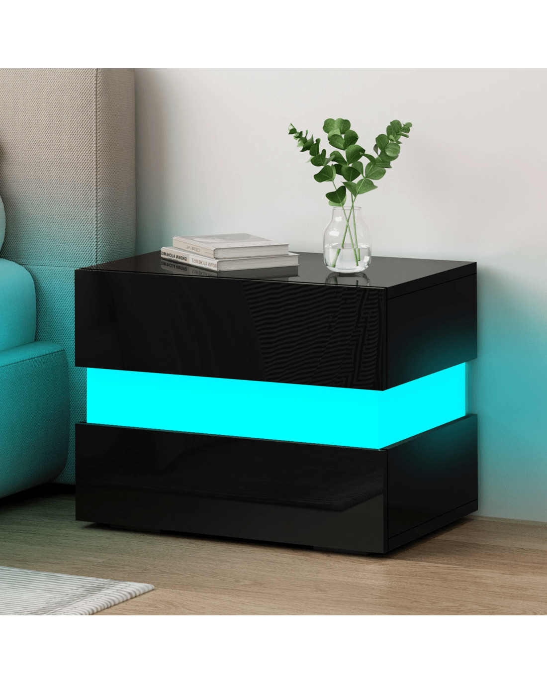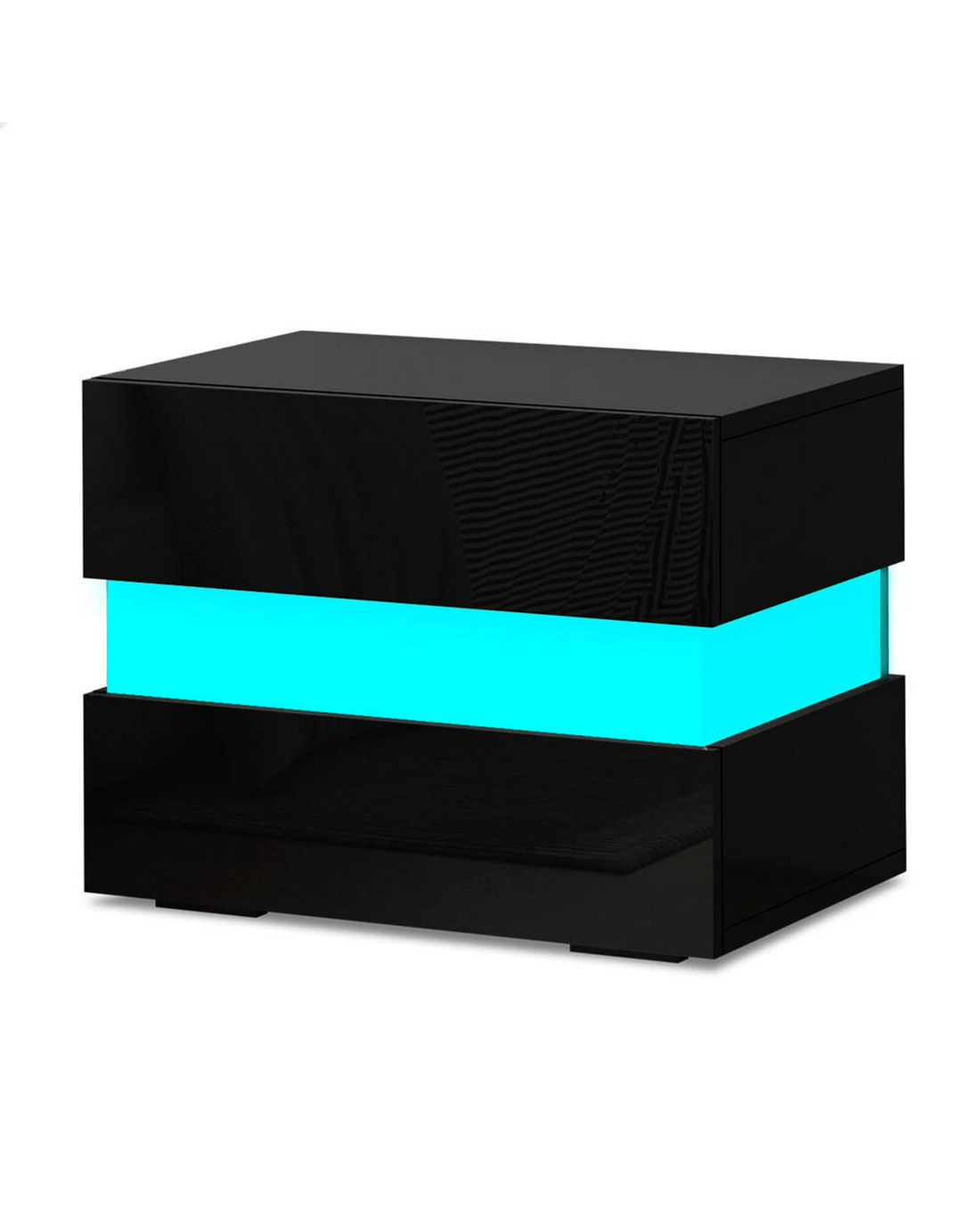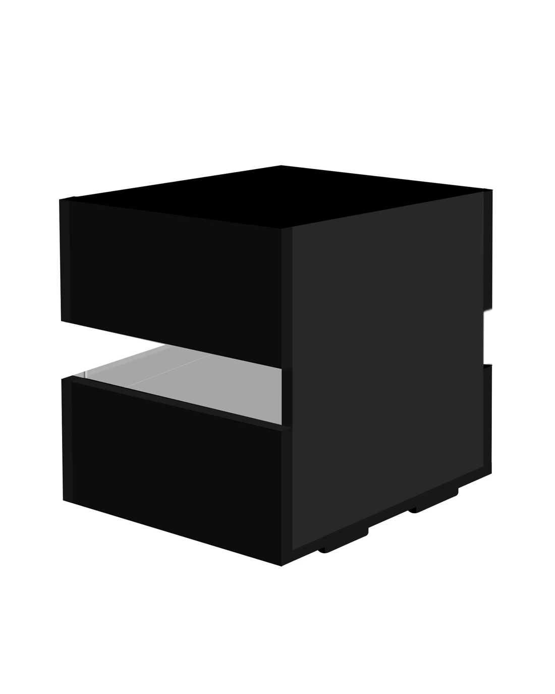 Alfordson Bedside Table RGB LED Nightstand 2 Drawers 4 Side High Gloss - Black