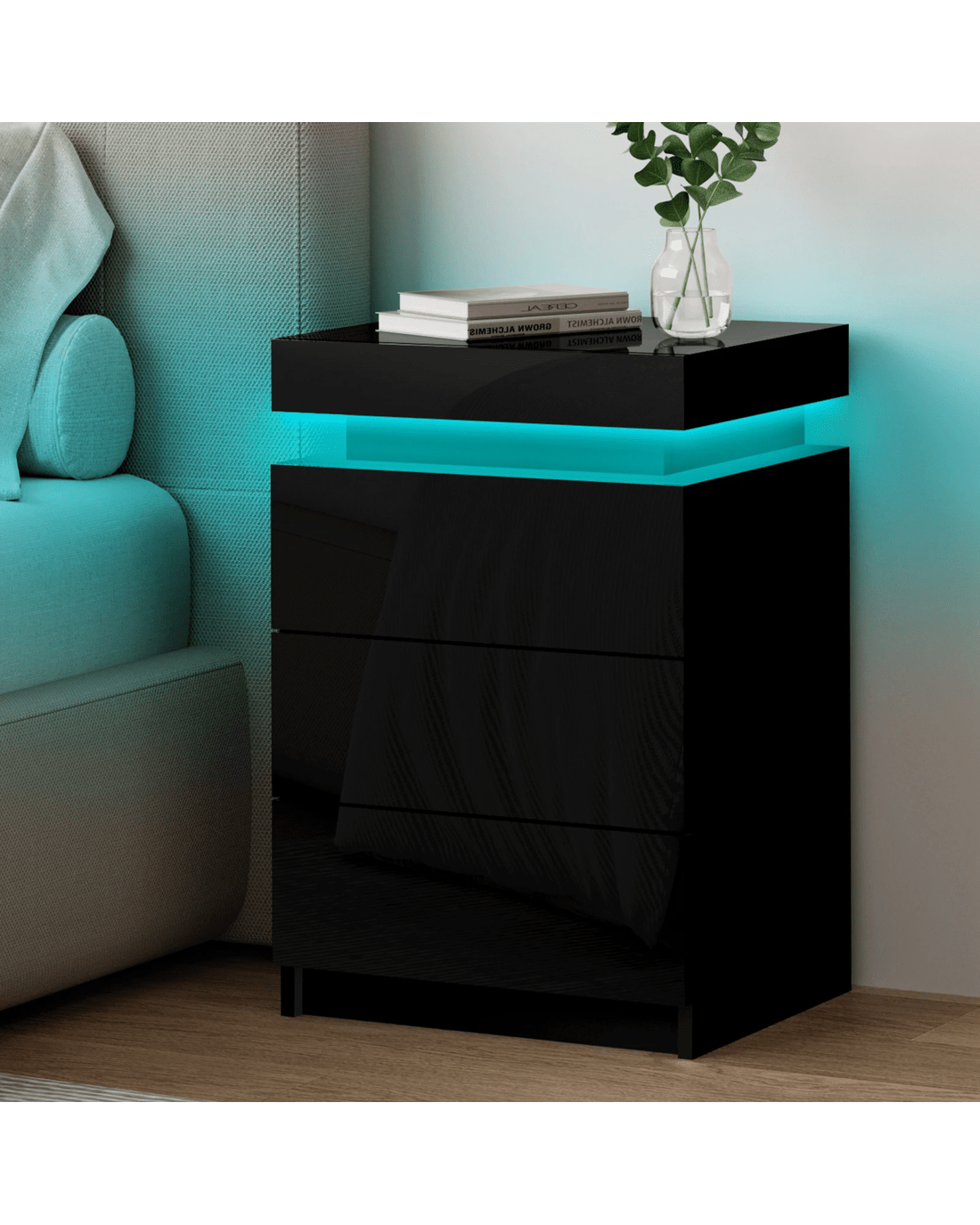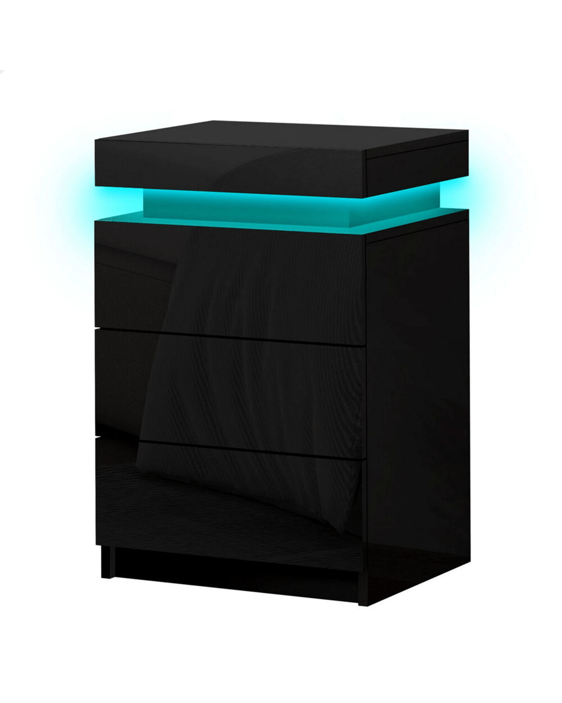 Sold by Aussie Union GroupAlfordson Bedside Table RGB LED Nightstand 3 Drawers 4 Side High Gloss - Black