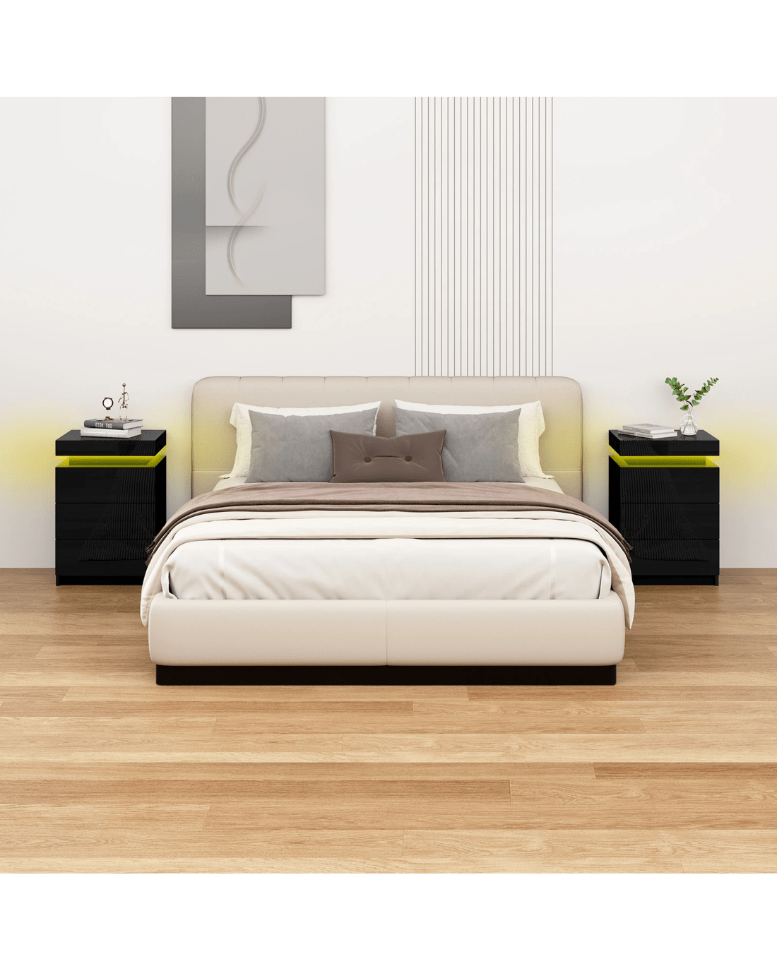 The ALFORDSON bedside table provides a surface to place necessary items like a lamp, a laptop, a book or whatever you may want to keep close by the bed. It features 3 deep drawers to provide ample storage so that'se items can be stored away in the drawers. Practicalities aside, this bedside table is also a key decorative element in your room. Our bedside table has gorgeous high gloss on 4 sides (top, front, right and left sides). It helps to enhance the feeling of space with its light-reflecting properties. It comes with LED lighting and a remote control for turning light on/off or changing light colour. You will find this LED lighting especially practical in dark.