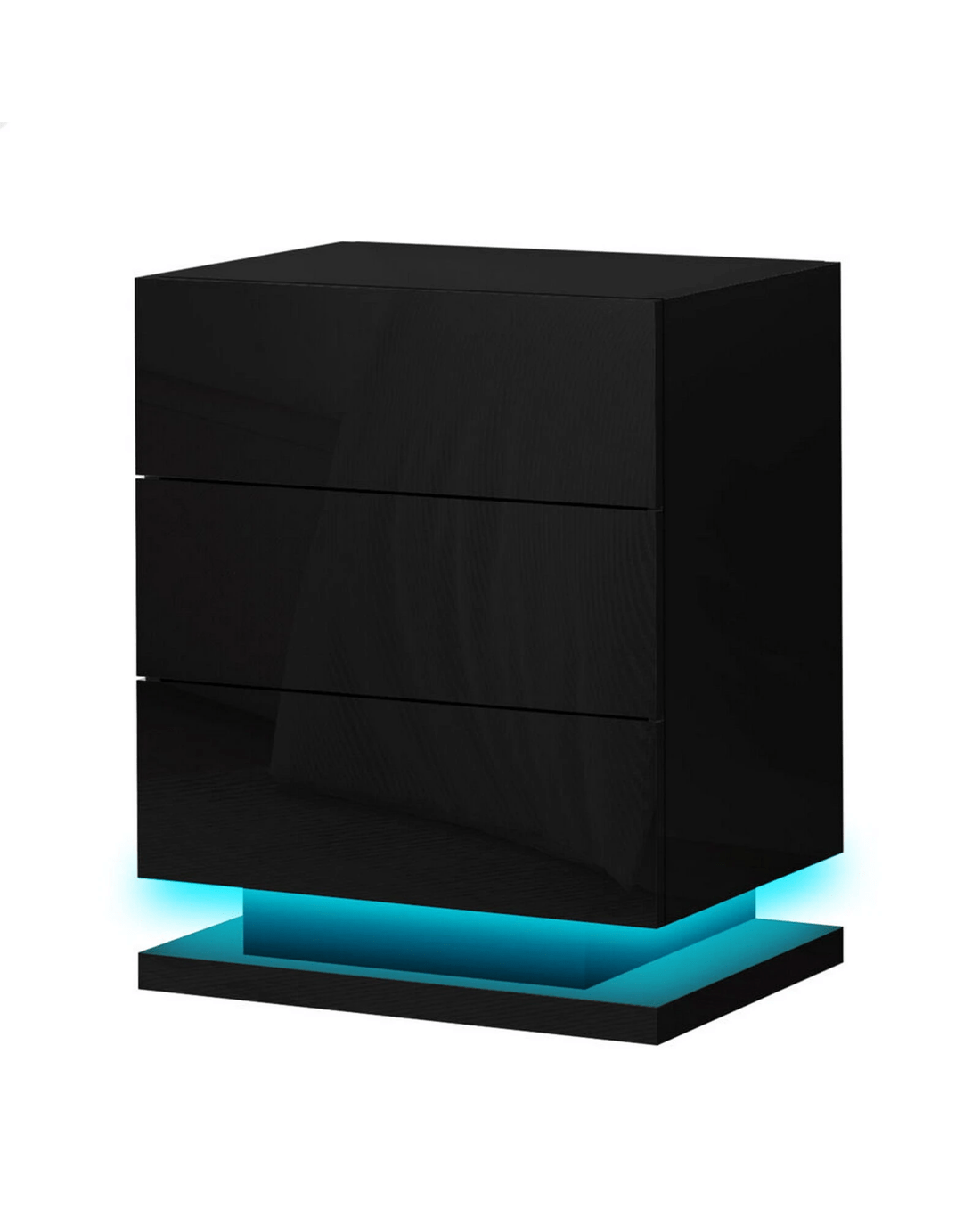 Sold by Aussie Union GroupAlfordson Bedside Table RGB LED Nightstand 3 Drawers 4 Side High Gloss - Black