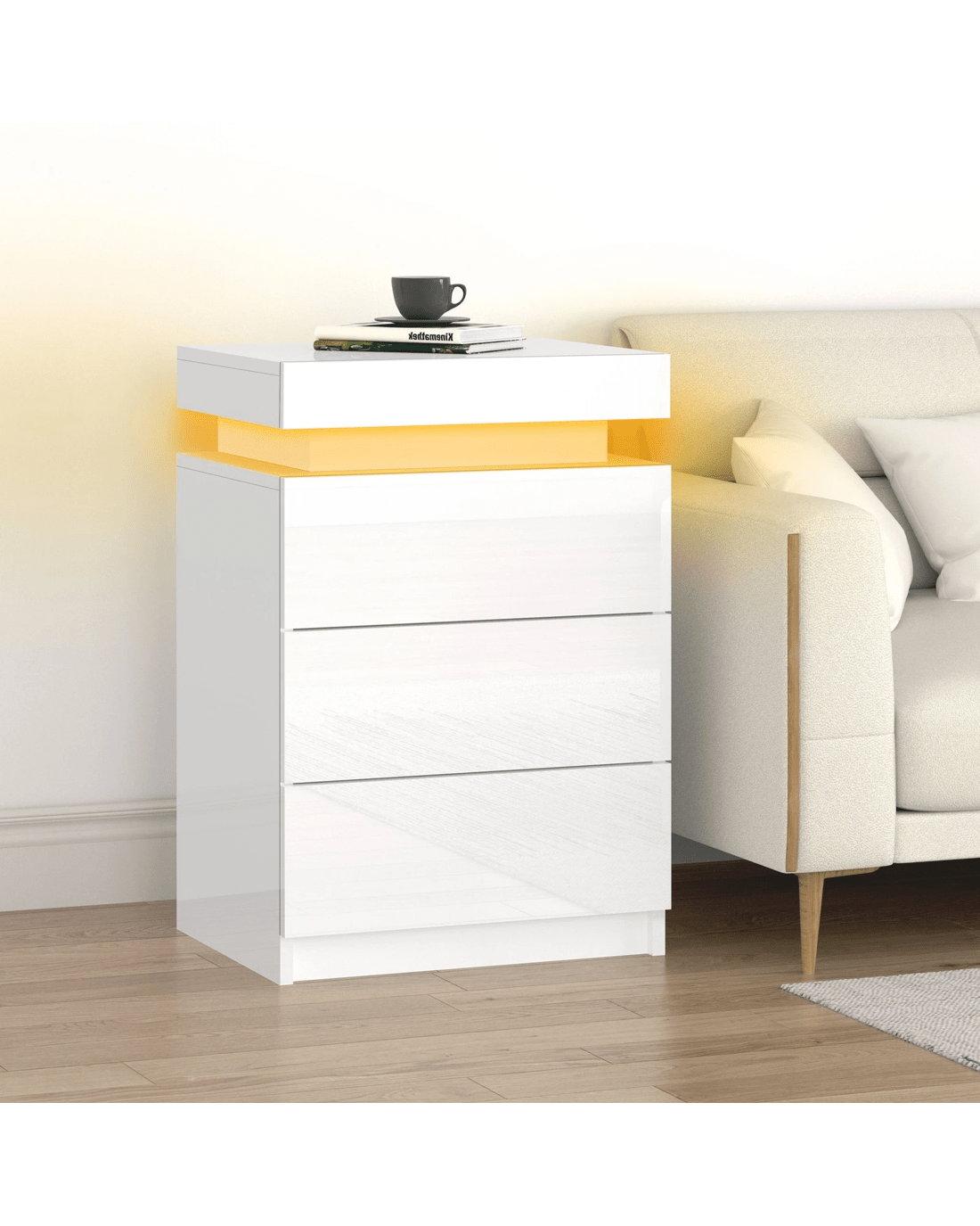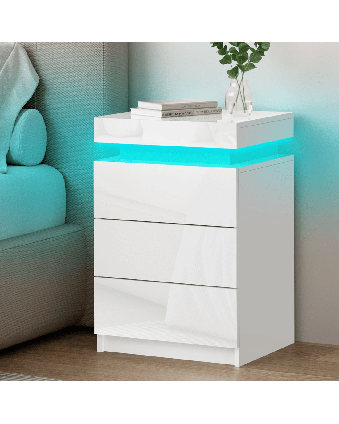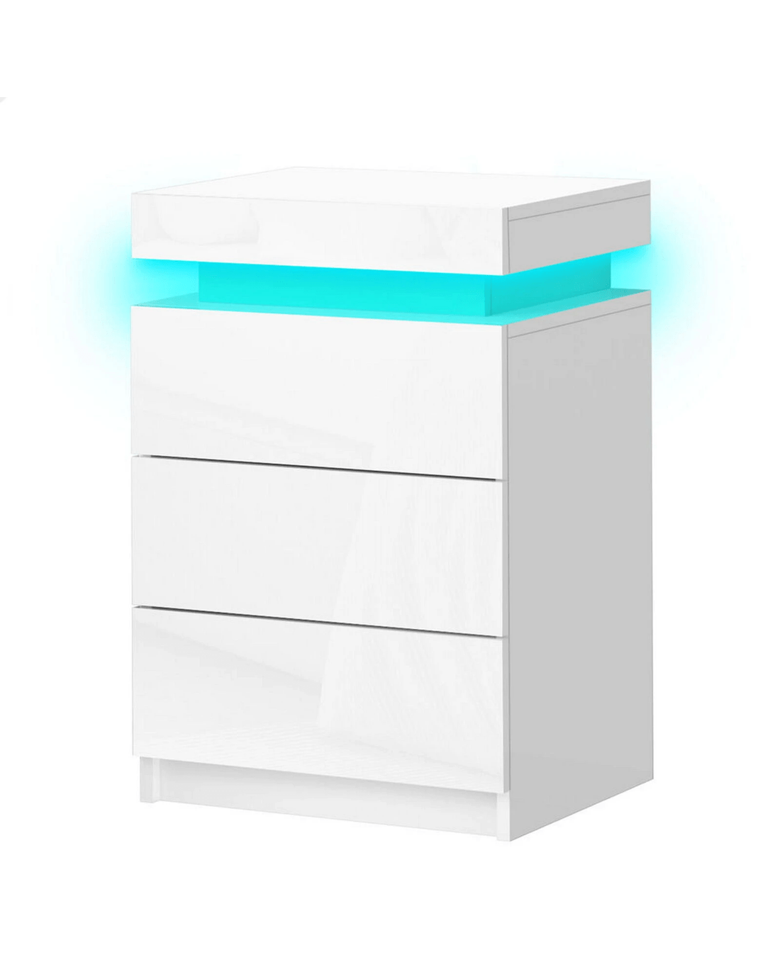 Sold by Aussie Union GroupAlfordson Bedside Table RGB LED Nightstand 3 Drawers 4 Side High Gloss - White