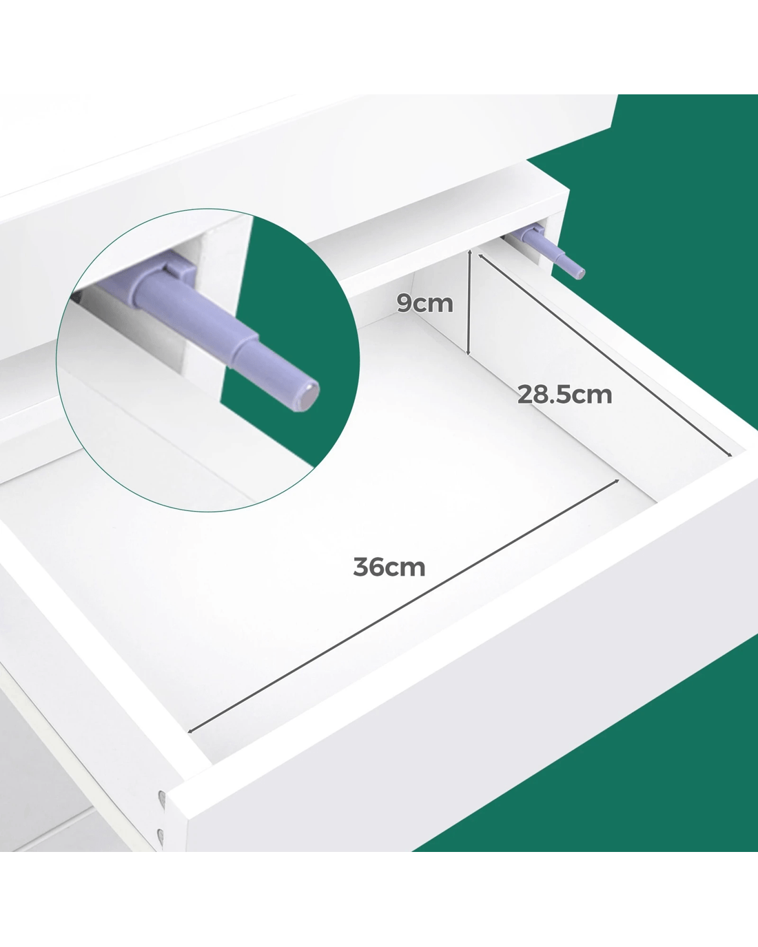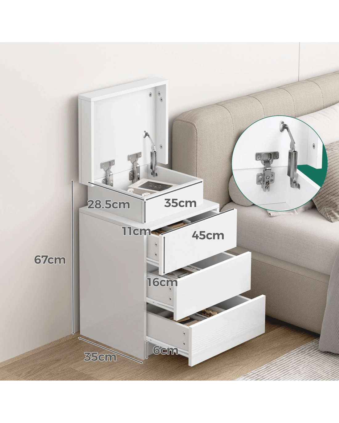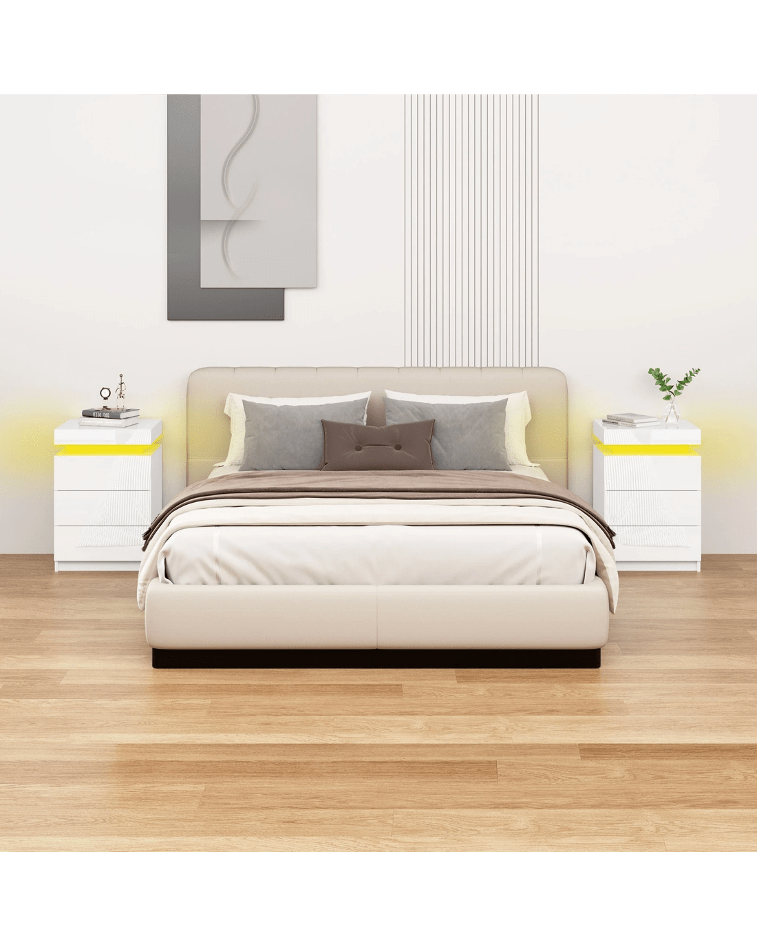 The ALFORDSON bedside table provides a surface to place necessary items like a lamp, a laptop, a book or whatever you may want to keep close by the bed. It features 3 deep drawers to provide ample storage so that'se items can be stored away in the drawers. Practicalities aside, this bedside table is also a key decorative element in your room. Our bedside table has gorgeous high gloss on 4 sides (top, front, right and left sides). It helps to enhance the feeling of space with its light-reflecting properties. It comes with LED lighting and a remote control for turning light on/off or changing light colour. You will find this LED lighting especially practical in dark.