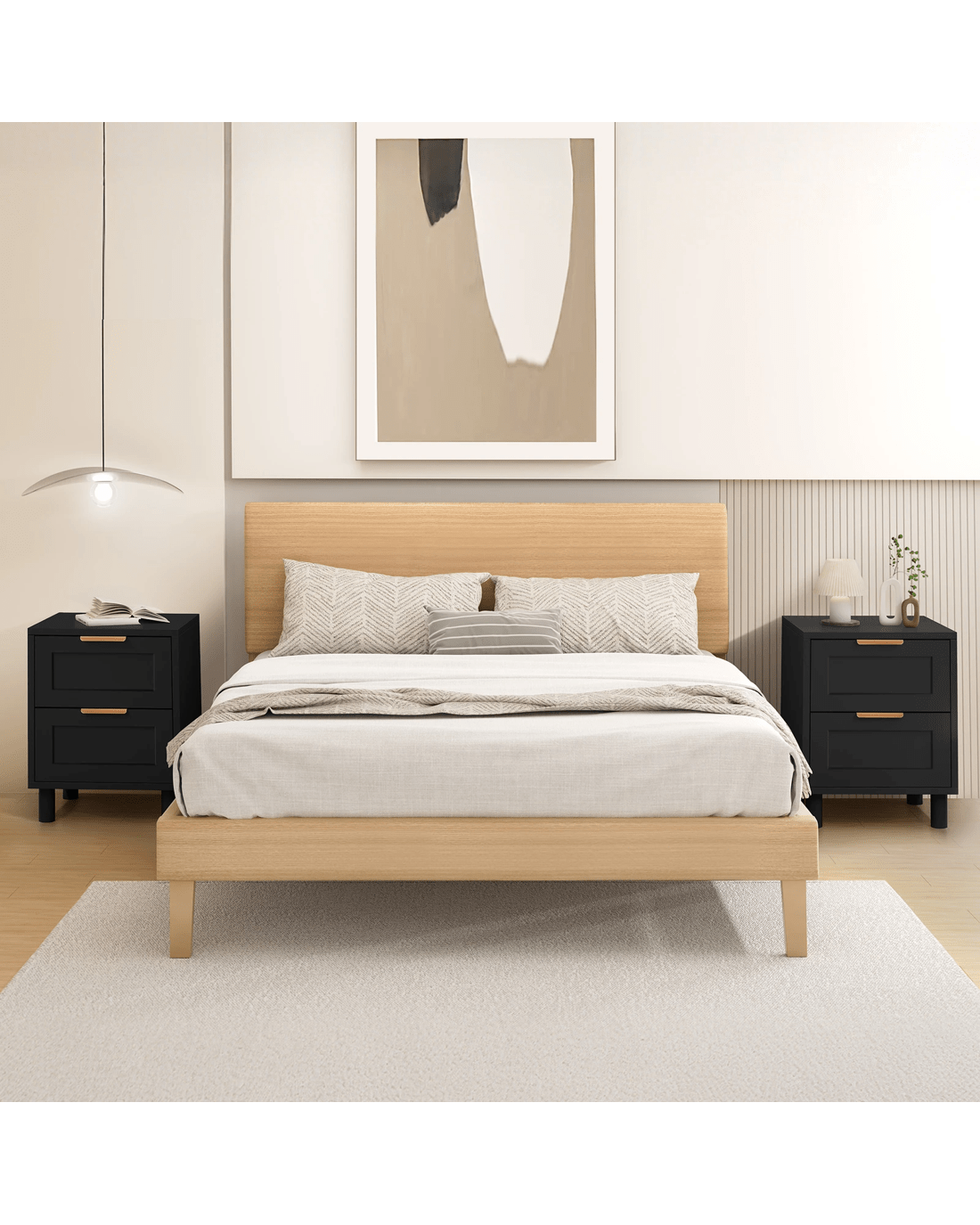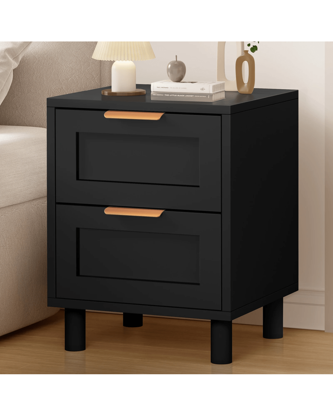 Sold by Aussie Union GroupAlfordson Bedside Table Side Storage Nightstand 2 Drawers Cabinet - Black