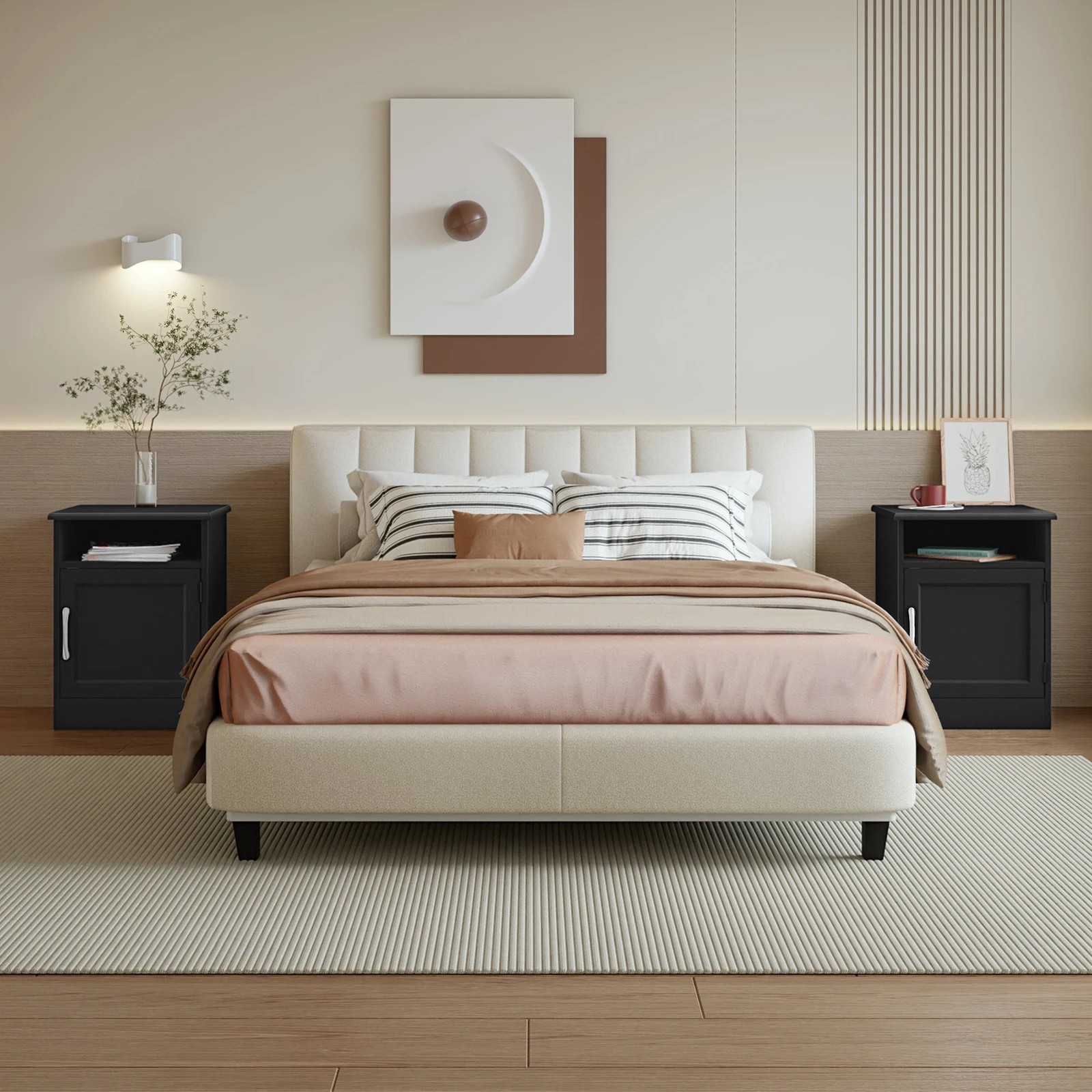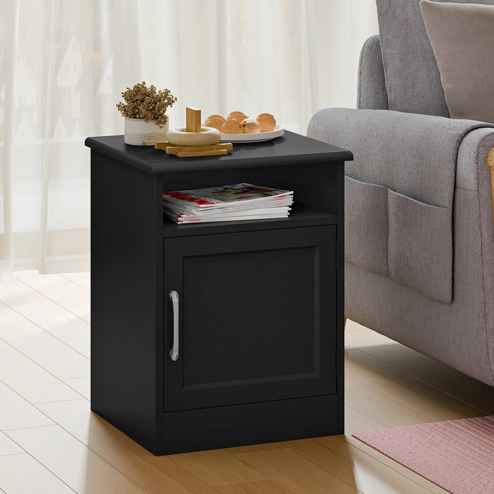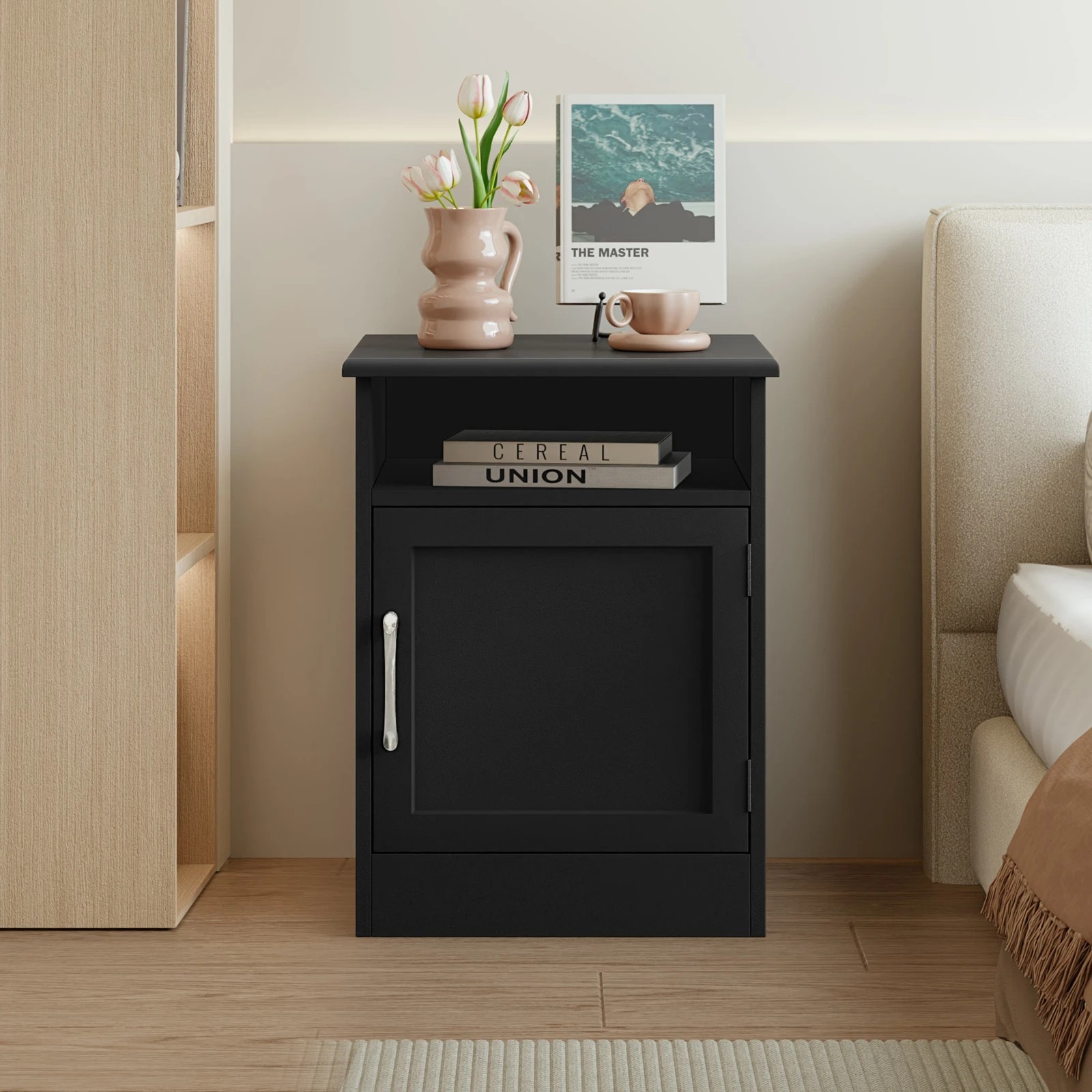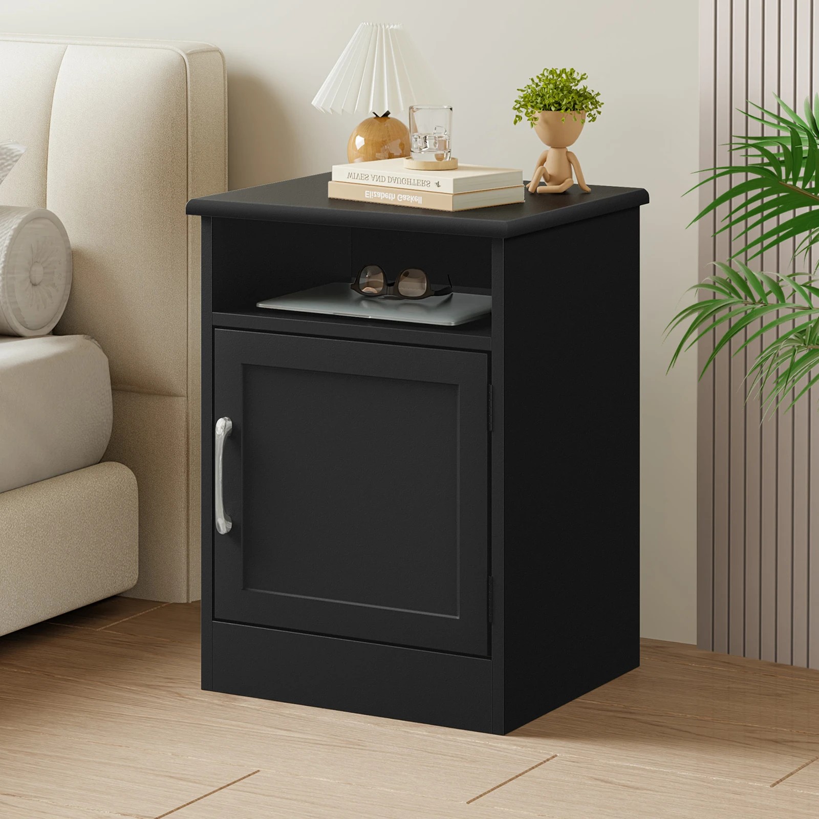 Alfordson Bedside Table Storage Cabinet Side End Nightstand - Black