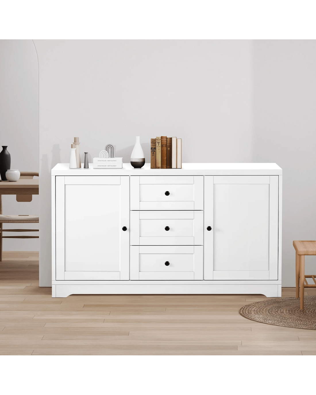 Versatile Design for Any Space - Featuring a monochrome color scheme and elegant wooden doors, this sideboard seamlessly blends with modern and rustic interiors. Its versatile design allows it to complement a variety of d??cor styles, making it a perfect fit for any room.