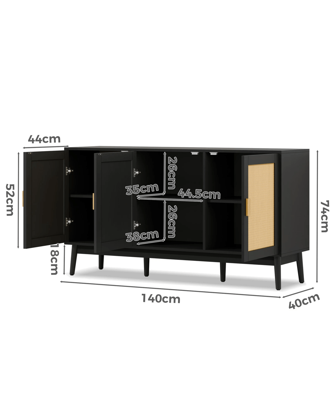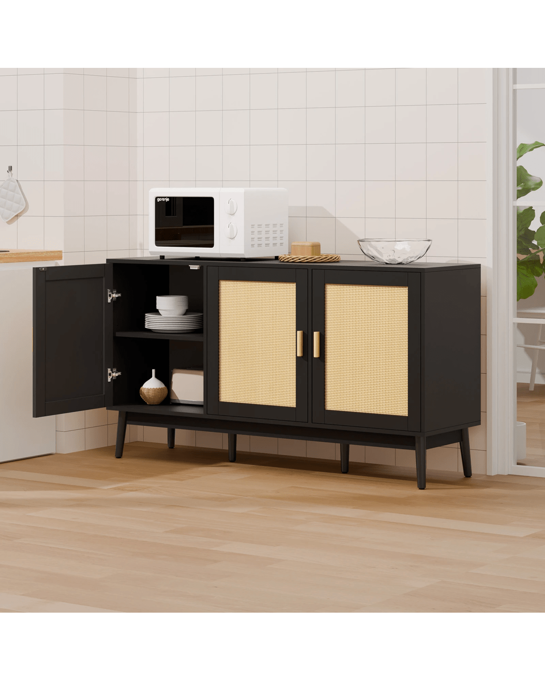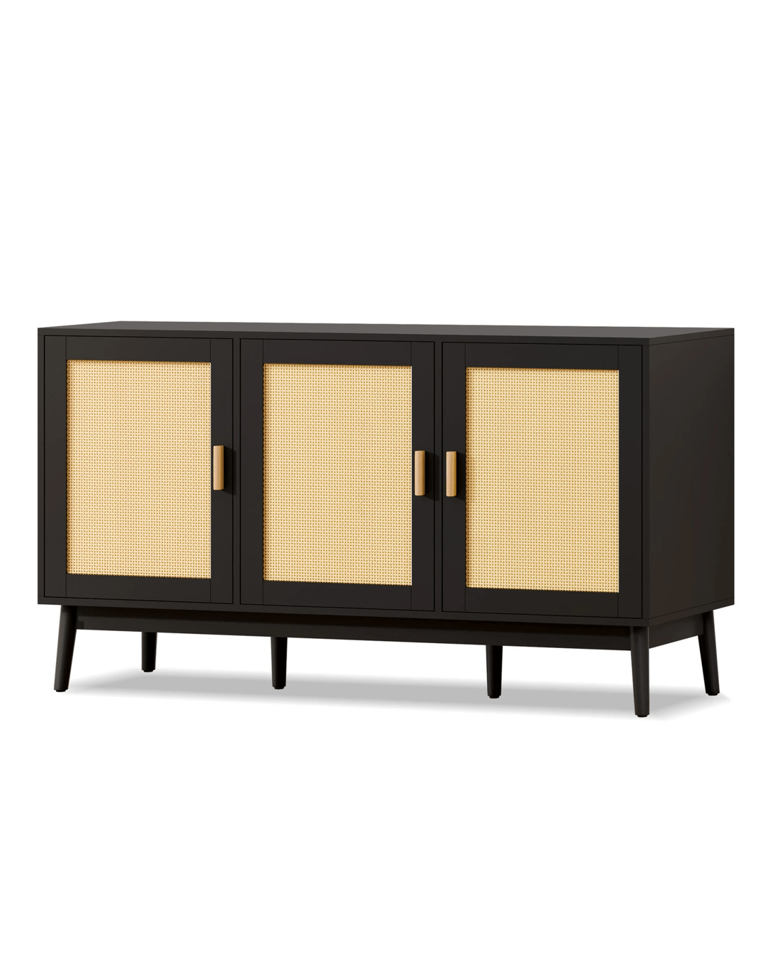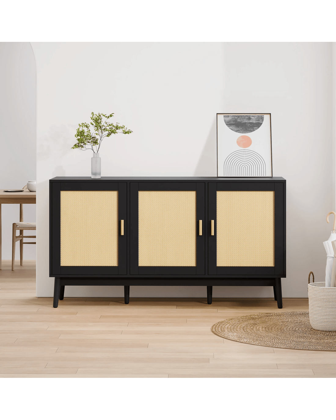 Versatile Design for Any Space - Featuring a monochrome scheme and elegant wooden doors with rattan accents, this sideboard seamlessly blends with modern and rustic interiors. Its versatile design allows it to complement a variety of d??cor styles, making it a perfect fit for any room.