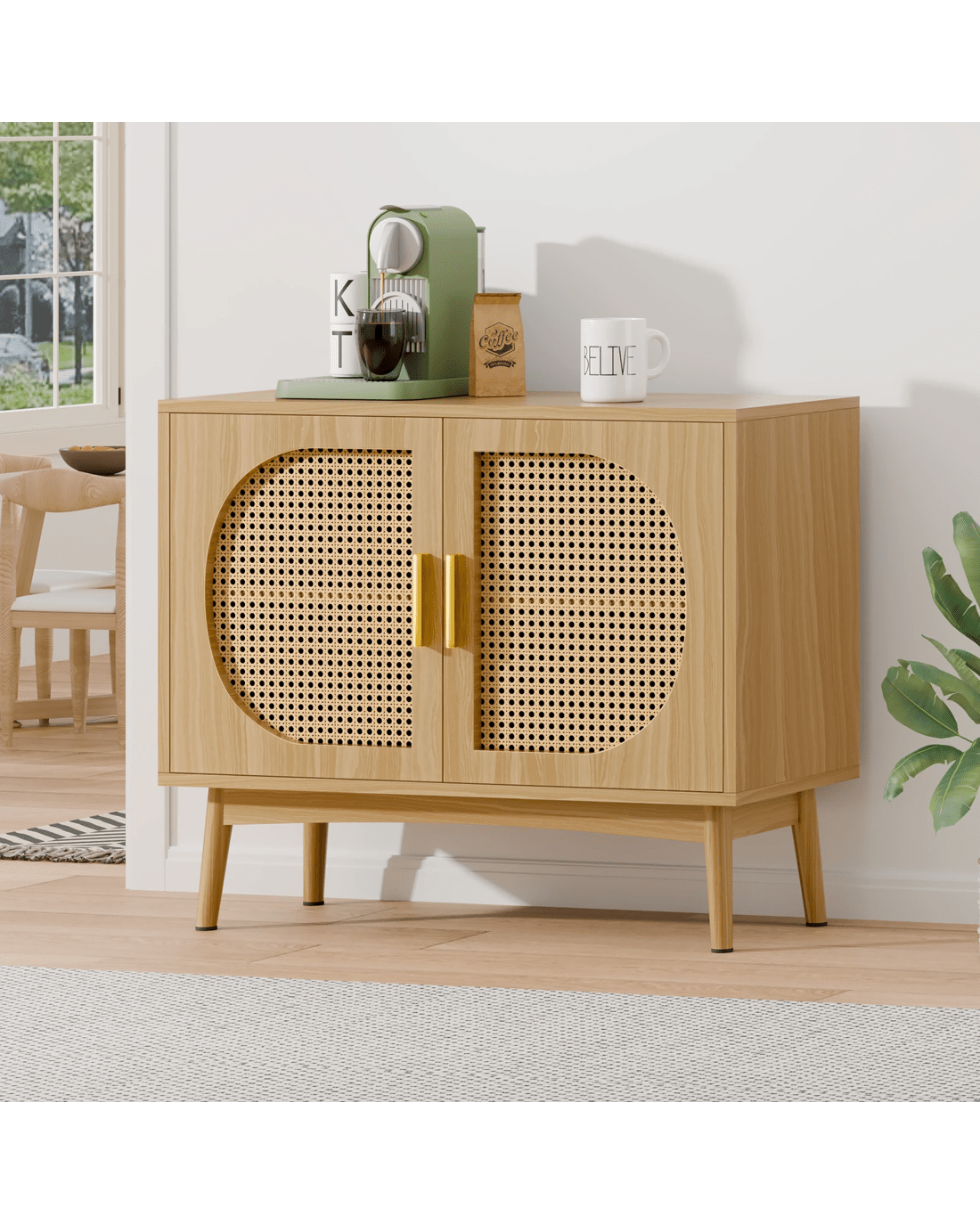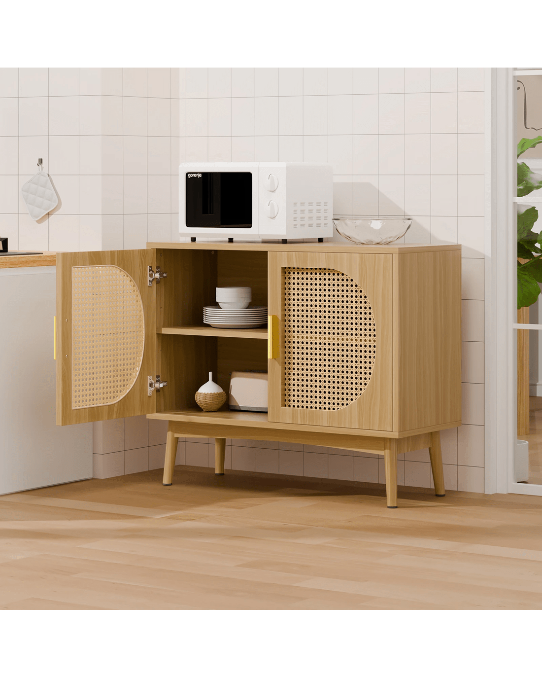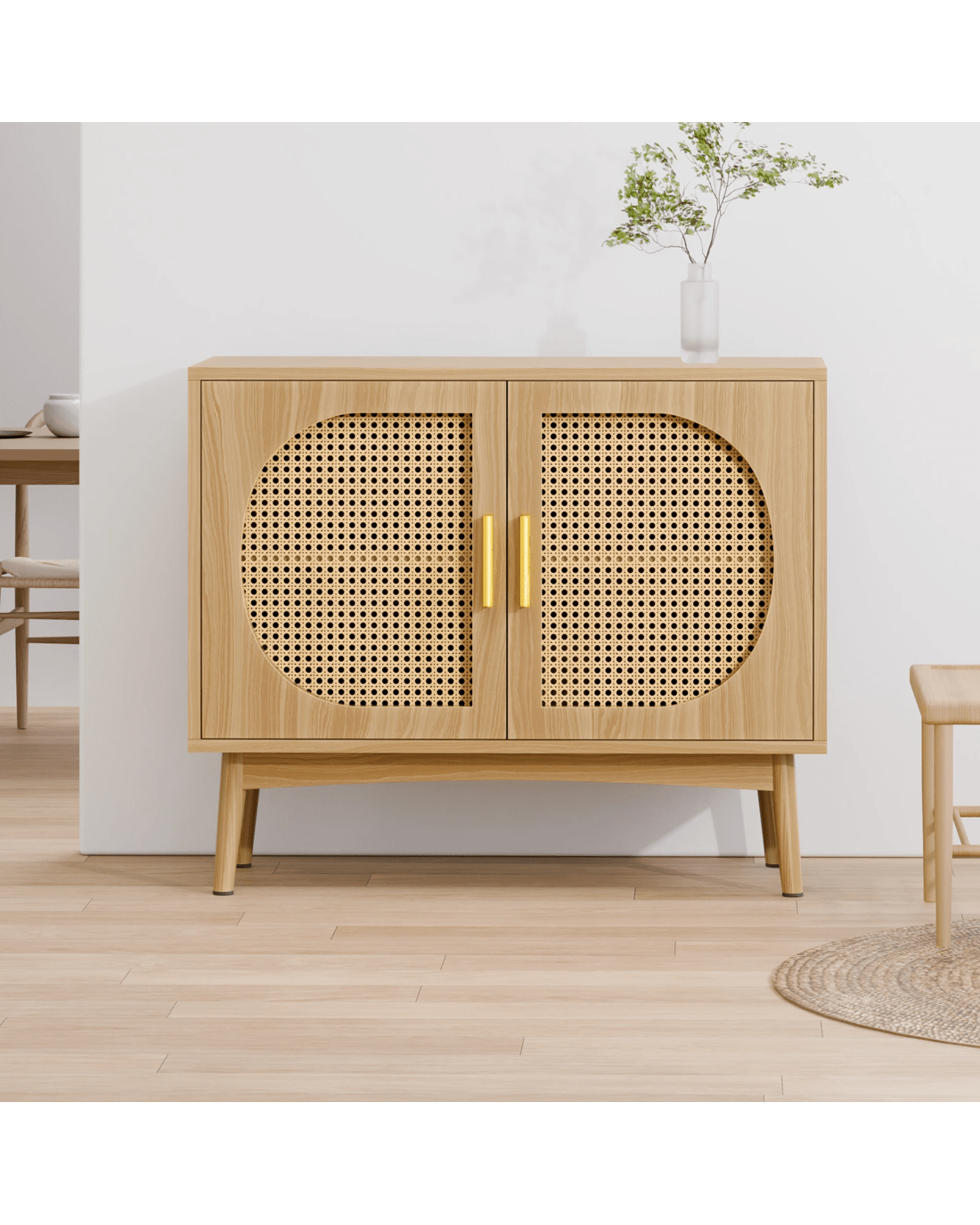 Versatile Design for Any Space - Featuring a monochrome scheme and elegant wooden doors with rattan accents, this sideboard seamlessly blends with modern and rustic interiors. Its versatile design allows it to complement a variety of d??cor styles, making it a perfect fit for any room.