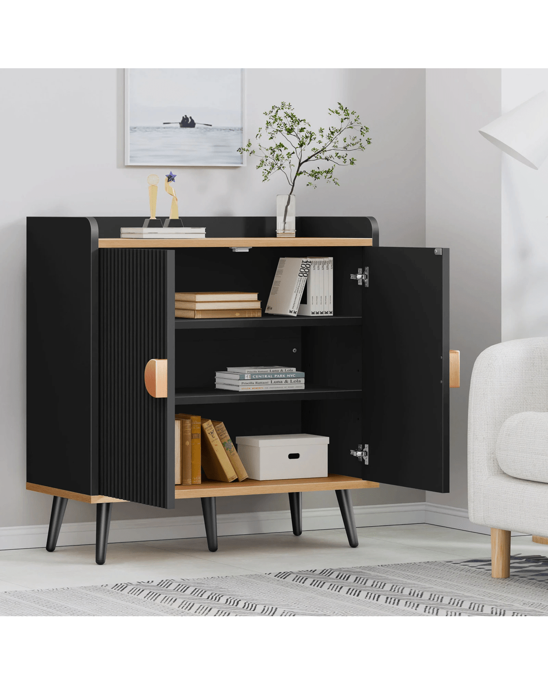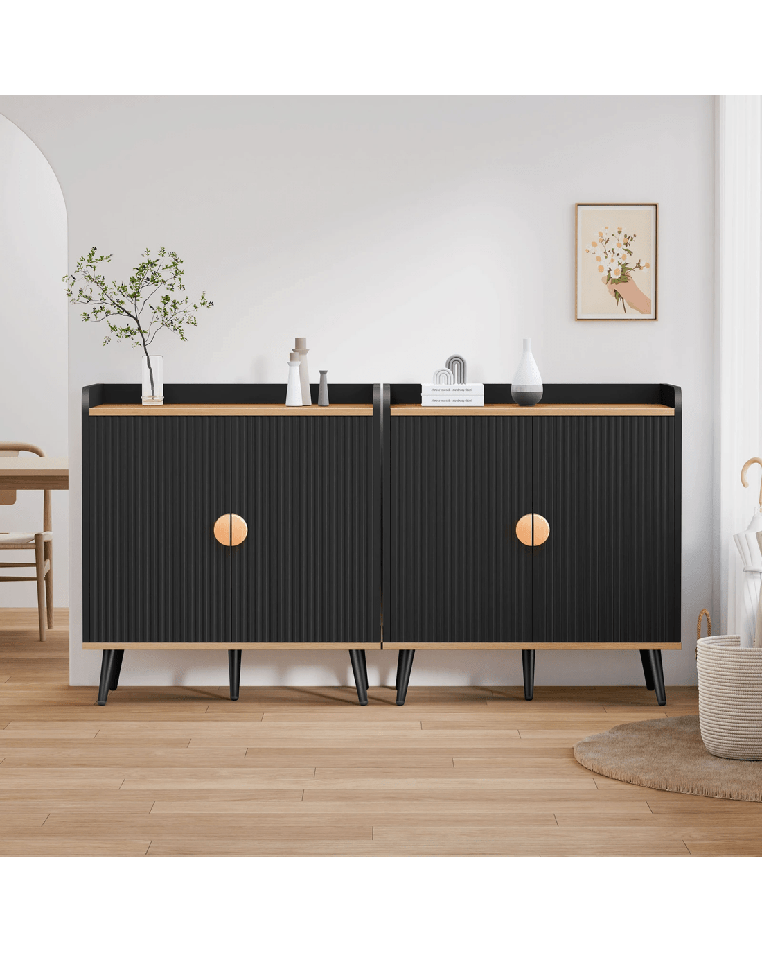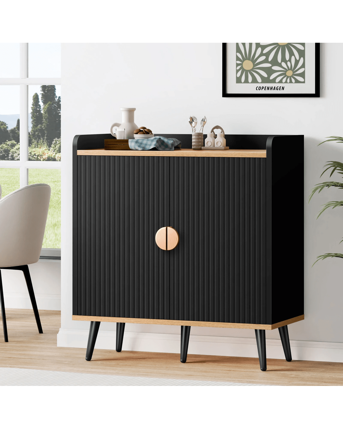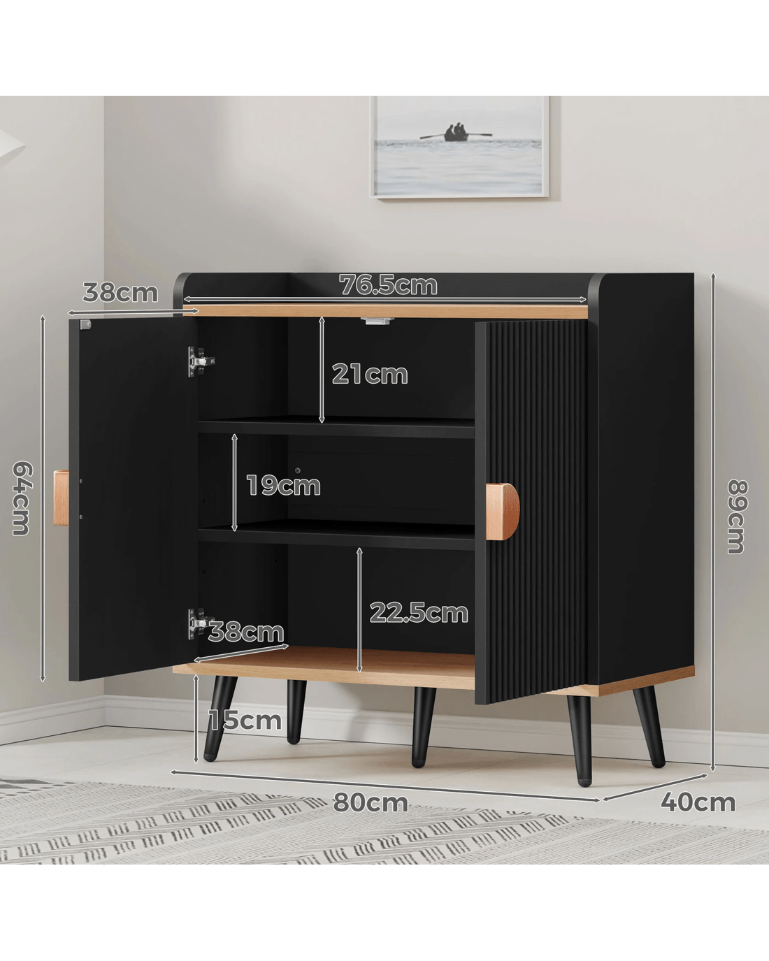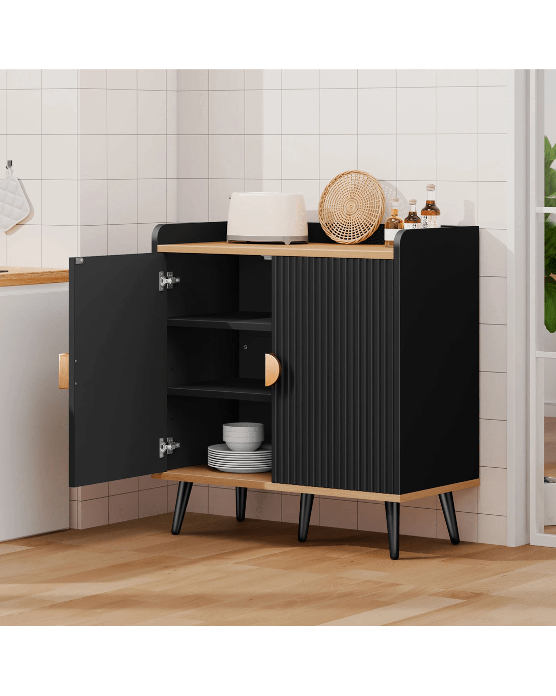 Alfordson Buffet Sideboard Cupboard Cabinet Storage Kitchen Hallway Doors - Black
