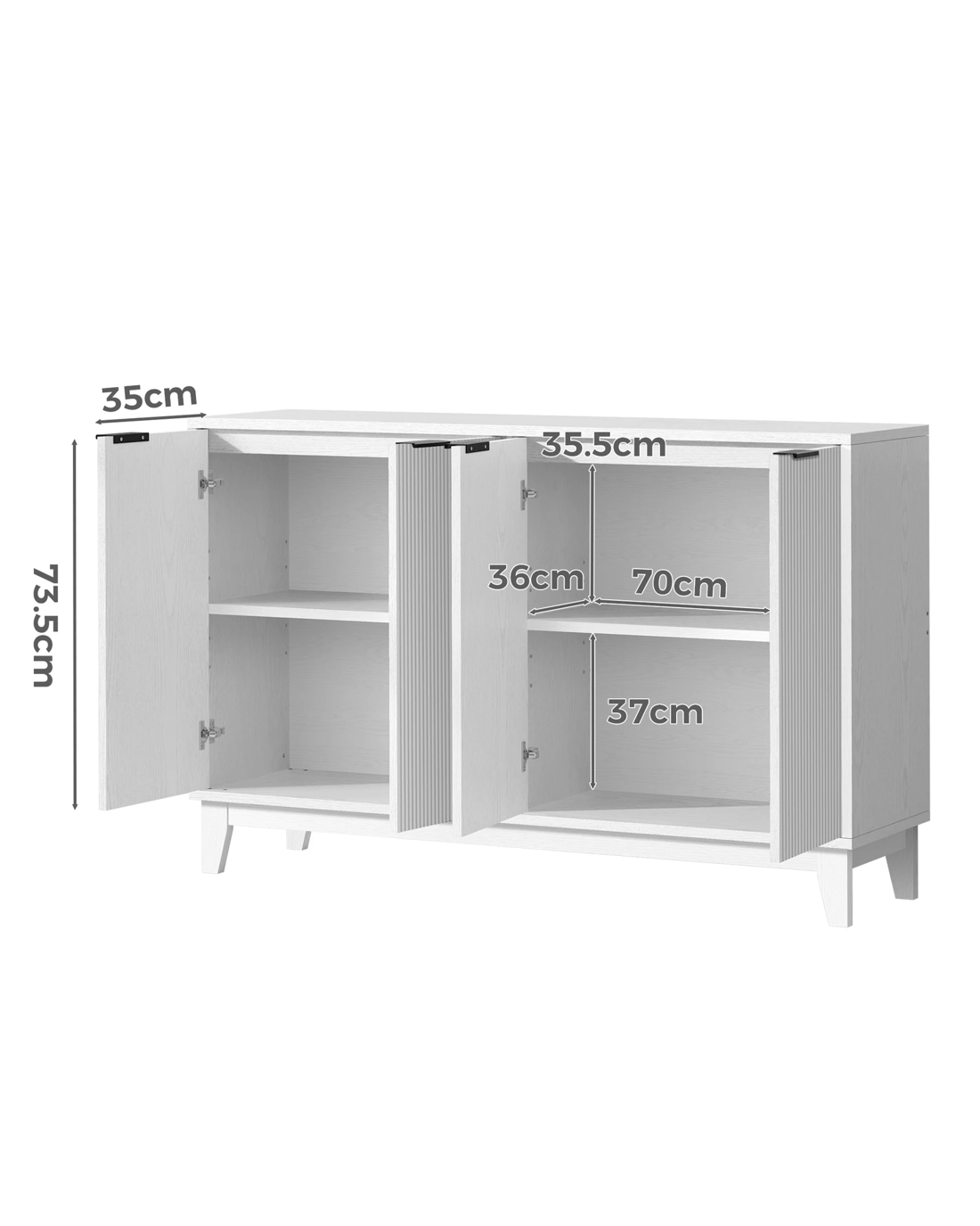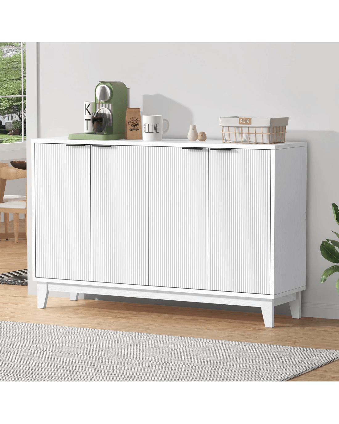 Versatile Design for Any Space - Featuring a monochrome color scheme and unique fluted doors, this sideboard seamlessly blends with modern and rustic interiors. Its versatile design allows it to complement a variety of d??cor styles, making it a perfect fit for any room.