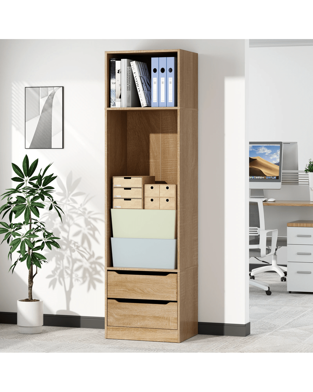 Abundant Storage - This well-designed office storage cabinet offers ample space with 2 open shelves and 2 drawers, keeping your workspace clutter-free and organized. The upper shelves provide quick access to frequently used files and items, ideal for those on the go, while the lower drawers are perfect for stashing confidential documents, stationery and other essentials.