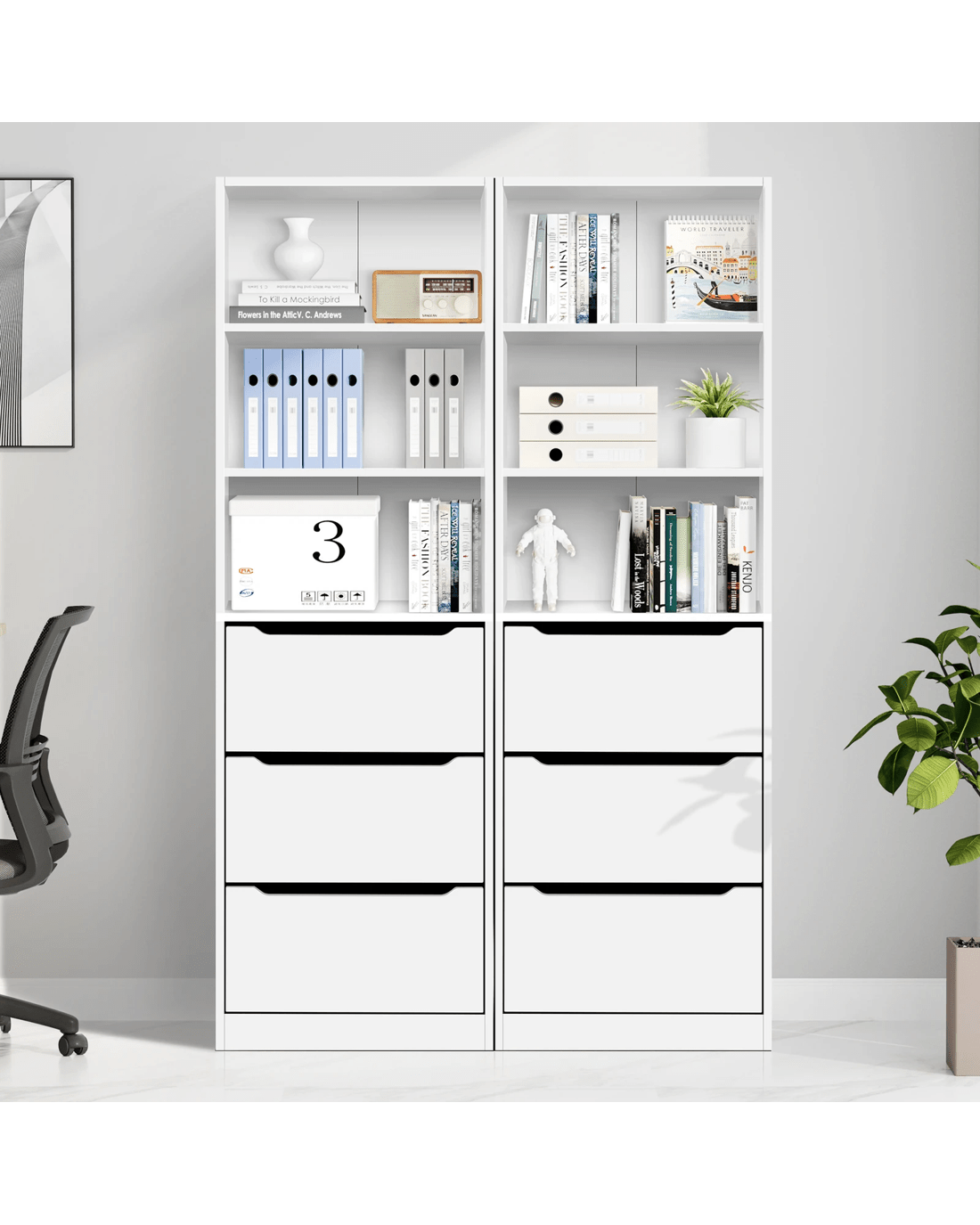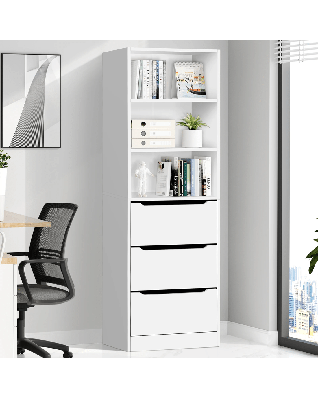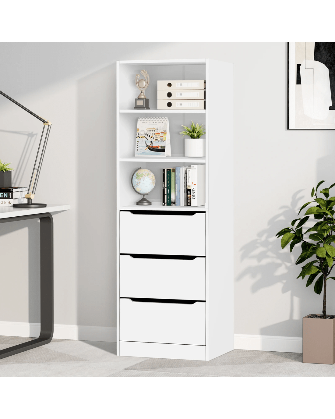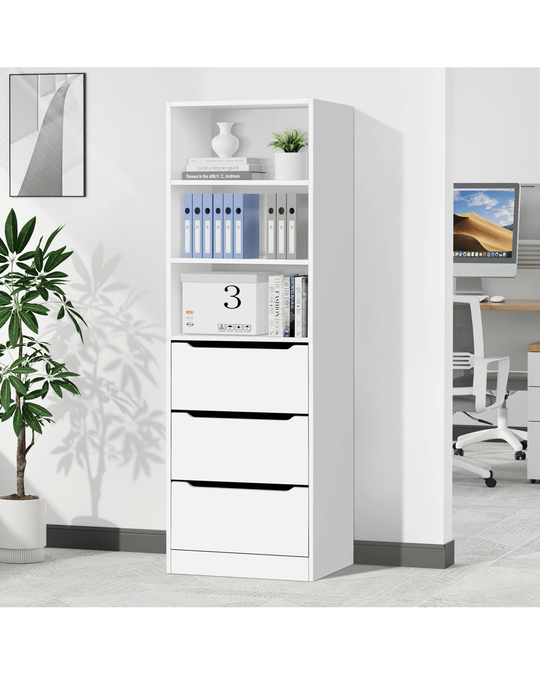 Abundant Storage - This well-designed office storage cabinet offers ample space with 3 open shelves and 3 drawers, keeping your workspace clutter-free and organized. The upper shelves provide quick access to frequently used files and items, ideal for those on the go, while the lower drawers are perfect for stashing confidential documents, stationery and other essentials.