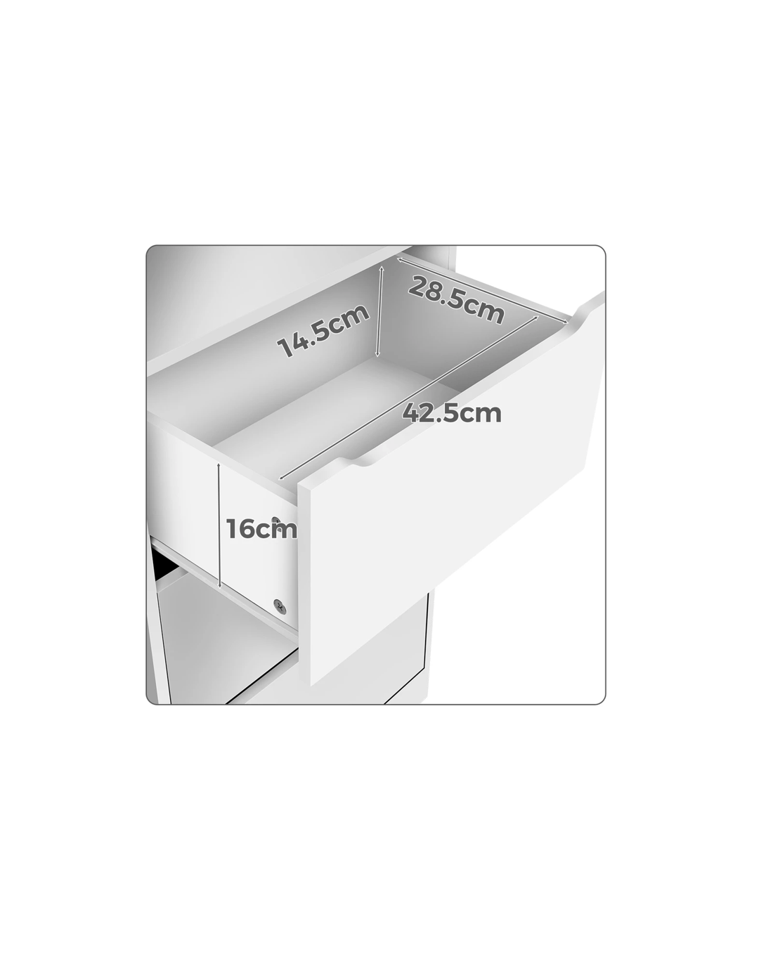 * Three ample drawers with handle-free design