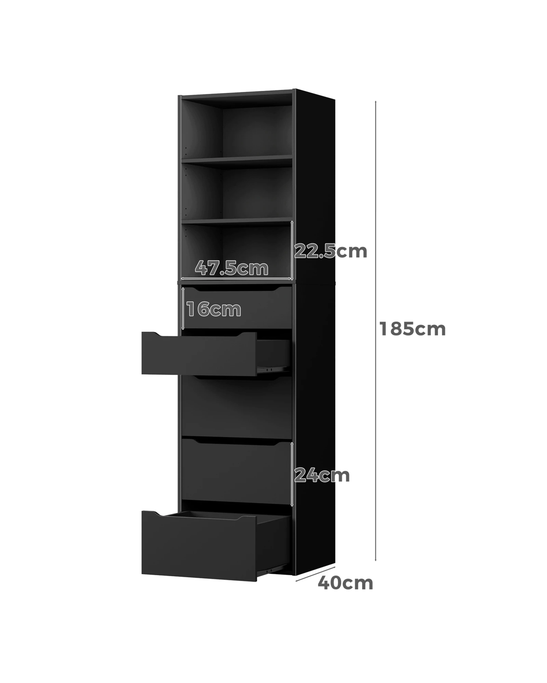 Alfordson Chest of 5 Drawers Office Storage Cabinet Tallboy Bedroom - Black