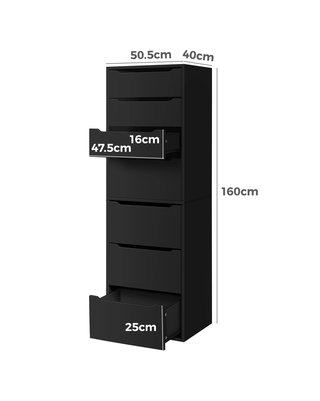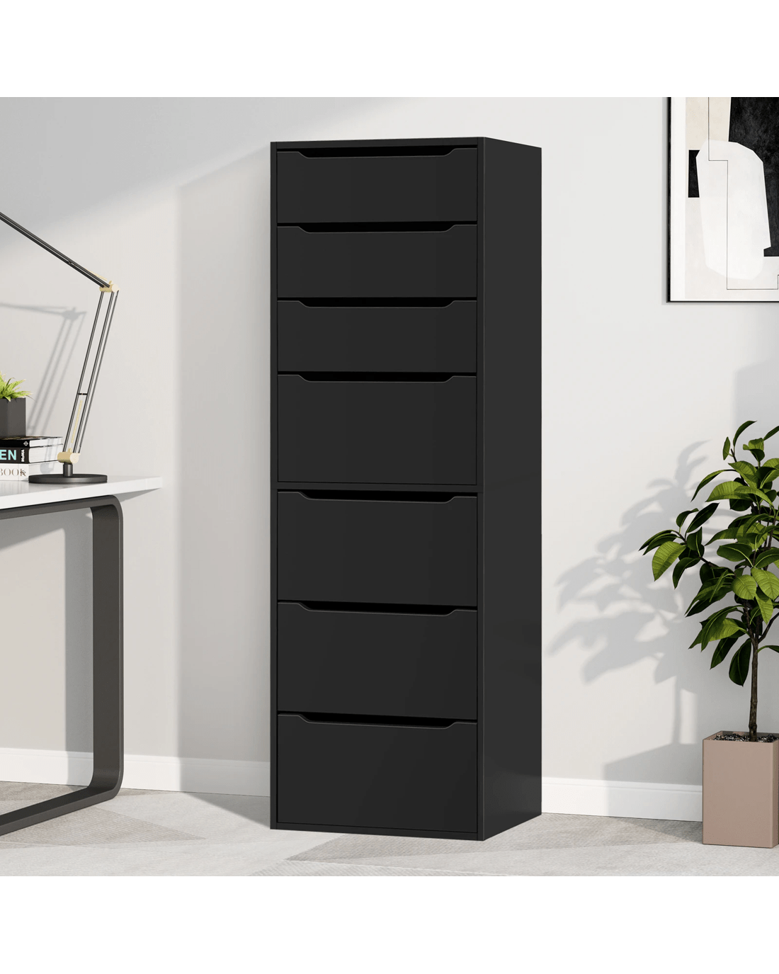 Alfordson Chest of 7 Drawers Office Storage Cabinet Tallboy Bedroom - Black