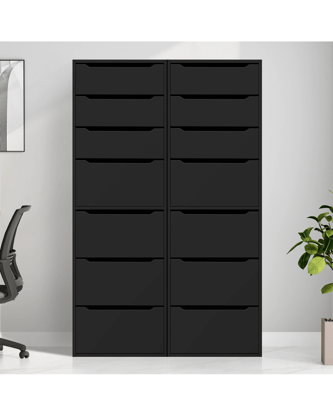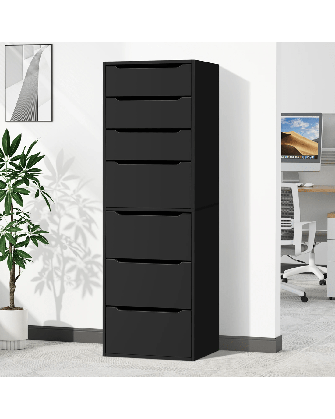Aesthetic Upgrade - Boasting a contemporary color palette and a sleek, minimalist design, this office storage cabinet effortlessly complements any office decor, elevating the overall look of your workspace. Its compact profile also allows for seamless integration with additional units, forming a modular storage system as chest of drawers for unique storage needs.