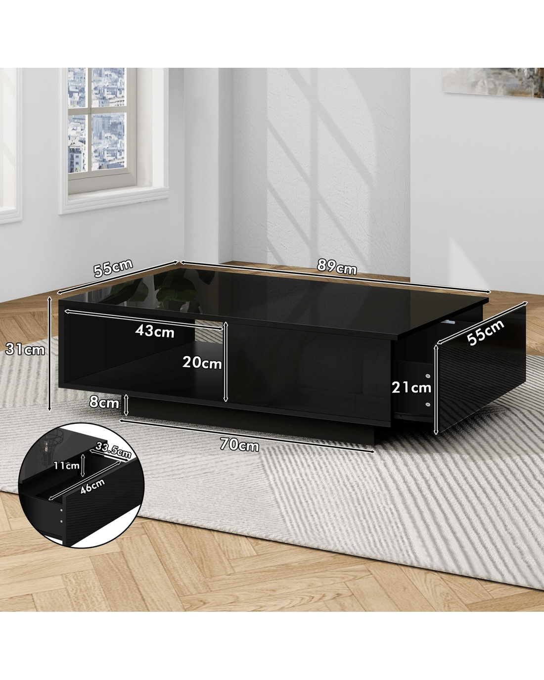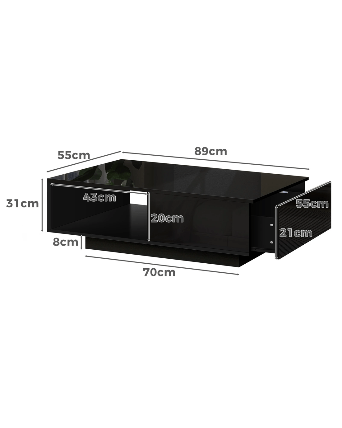 Sold by Aussie Union GroupAlfordson Coffee Table 1 Drawer LED Gloss - Black
