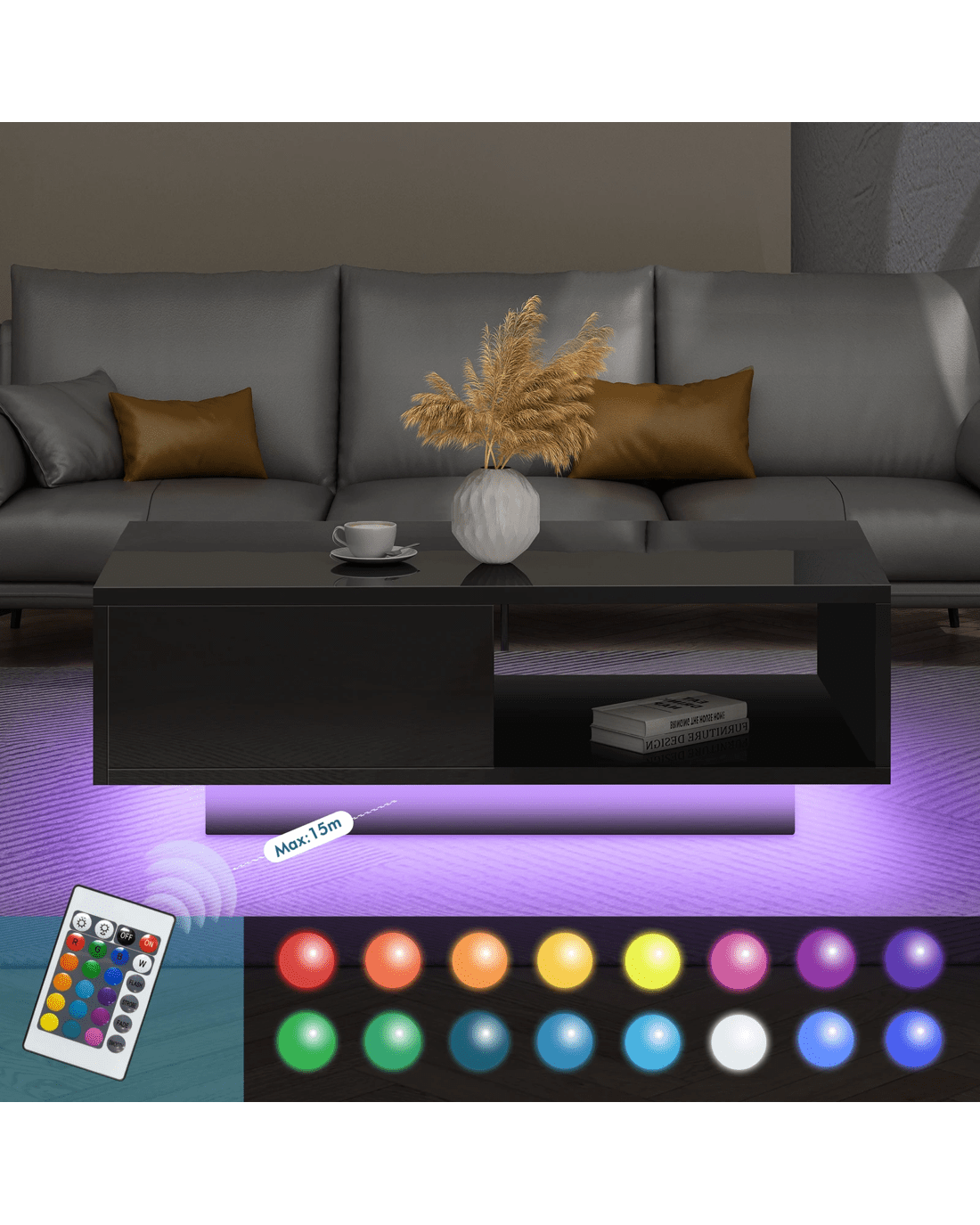 Reliable quality - Crafted from superior E1 grade and 15mm thick particle board, our coffee table is designed to be highly durable. Unlike some other sellers, we have no compromise on materials used. Well made with melamine finish, it is waterproof, anti-scratched and easy to maintain and clean. With a remote control for turning light on/off or changing light color, you will find this LED lighting especially practical in dark. It can provide adequate lighting to avoid nighttime accidents, especially for seniors, ensuring their safety. It saves you money on buying a lamp as well as space for placing the lamp.