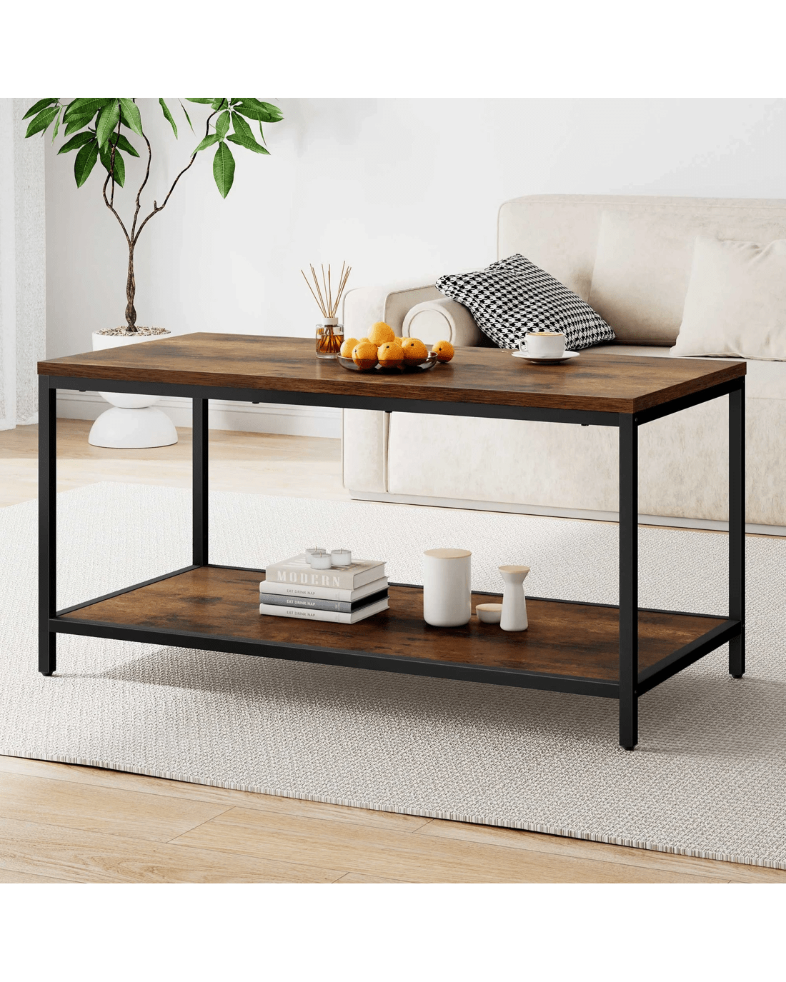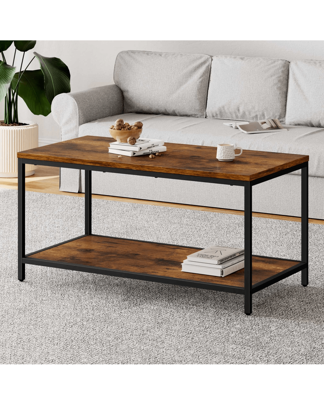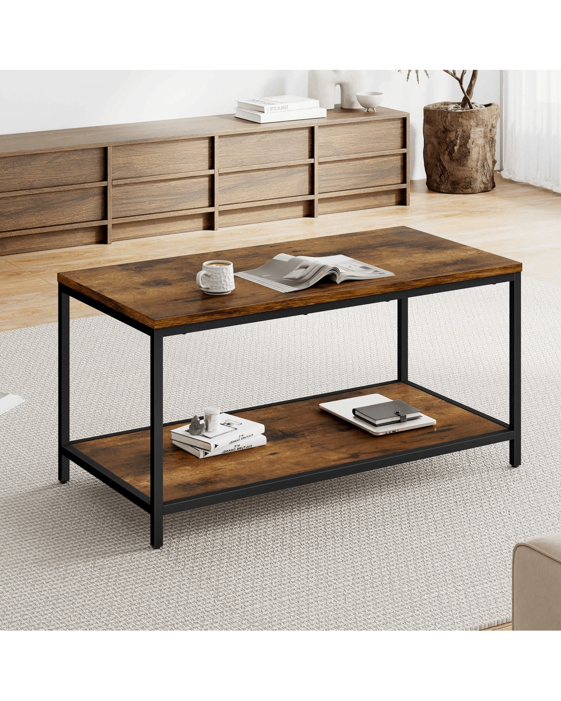 Not only will it add a vintage look to your home d??cor, but the coffee table also provides ample storage option with 2-tier design. The wide rectangular tabletop is just the right place for magazines, TV remotes and potted plants. An open shelf underneath offers additional storage space to store your living room essentials, keeping your room organized and tidy. As a versatile piece of furniture, the coffee table plays a vital role in providing a central space for people to gather, share stories, enjoy a cup of coffee, or engage in board games or puzzles.