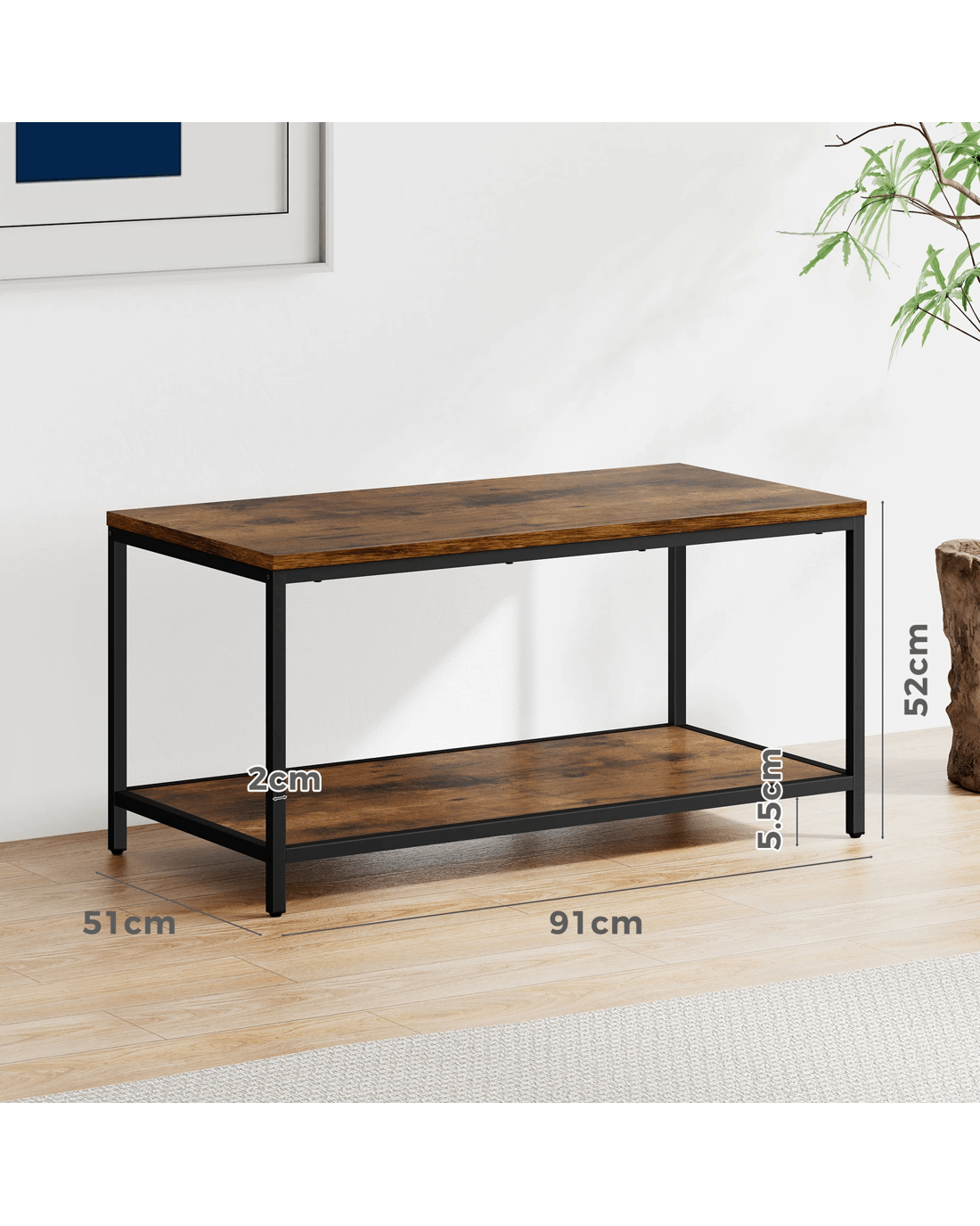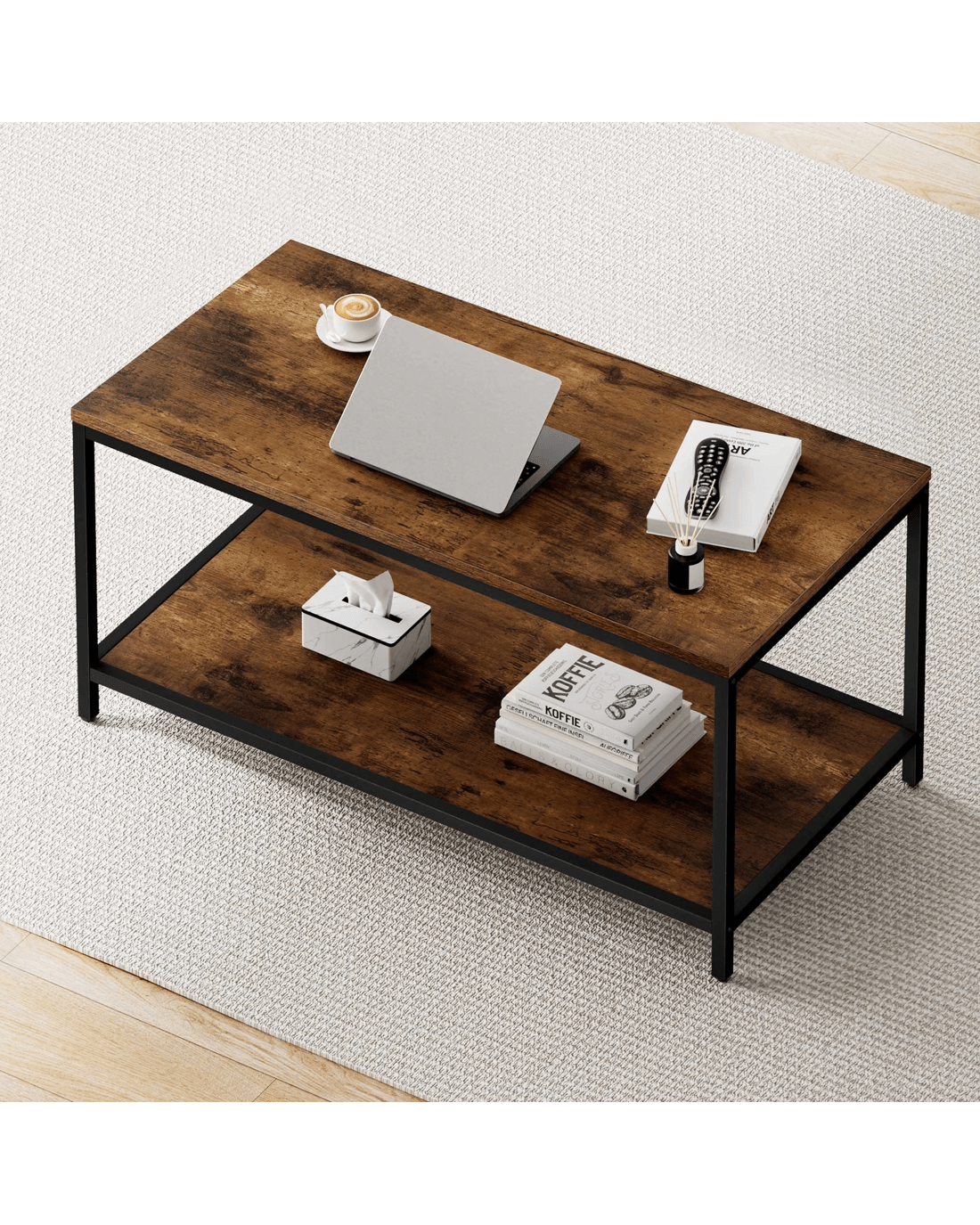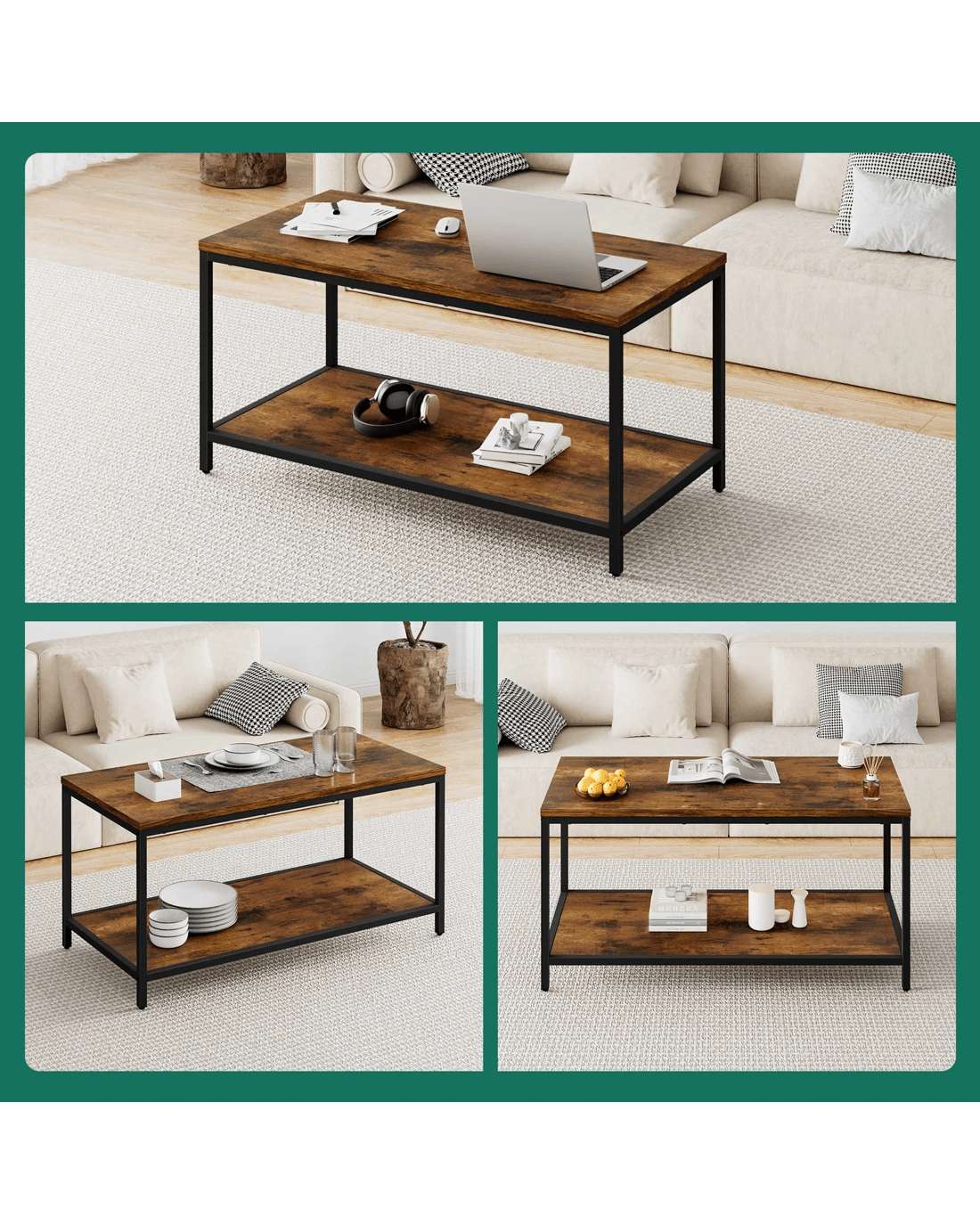 Not only will it add a vintage look to your home d??cor, but the coffee table also provides ample storage option with 2-tier design. The wide rectangular tabletop is just the right place for magazines, TV remotes and potted plants. An open shelf underneath offers additional storage space to store your living room essentials, keeping your room organized and tidy. As a versatile piece of furniture, the coffee table plays a vital role in providing a central space for people to gather, share stories, enjoy a cup of coffee, or engage in board games or puzzles.