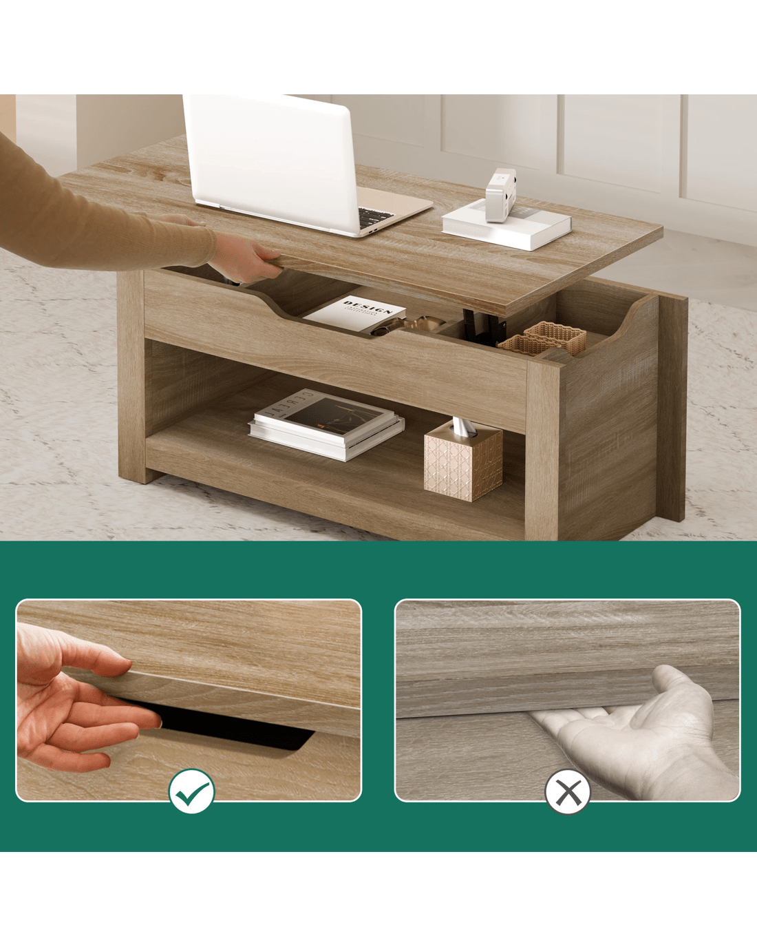 Featuring heavy-duty and smooth lifting mechanism, the tabletop can be effortlessly evelvated to a comfortable height, creating a spacious workspace or dining surface while you're sitting on the sofa.