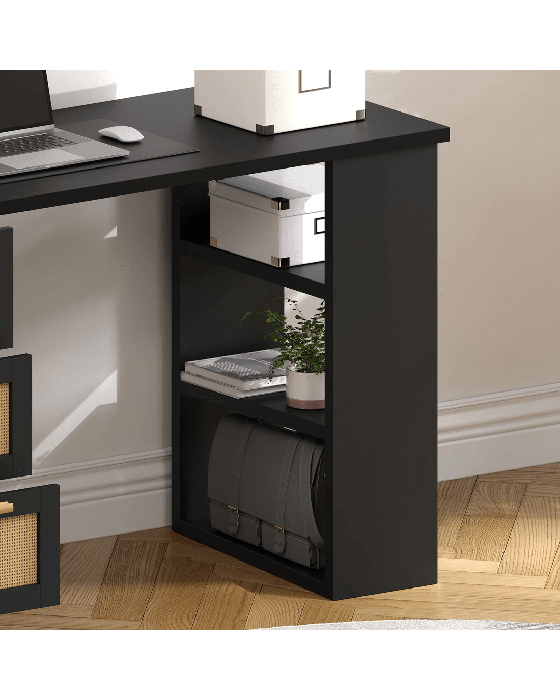 * 3 under-desk open shelves
