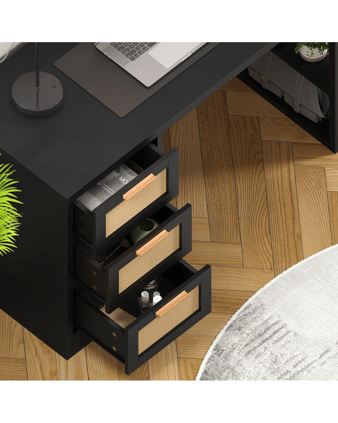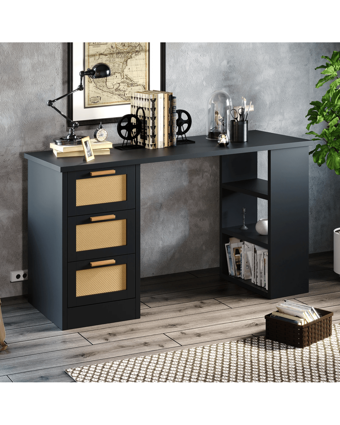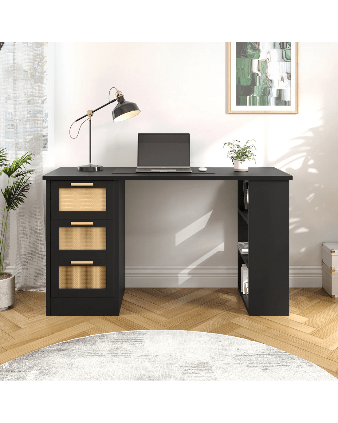 The design of this rattan desk combines both classic and modern styles, which makes it effortlessly blend into various decoration style from traditional to modern. It is the perfect addition to your office, study room, bedroom, studio or living room to serve as a computer desk, study table, workstation desk, writing or gaming desk.