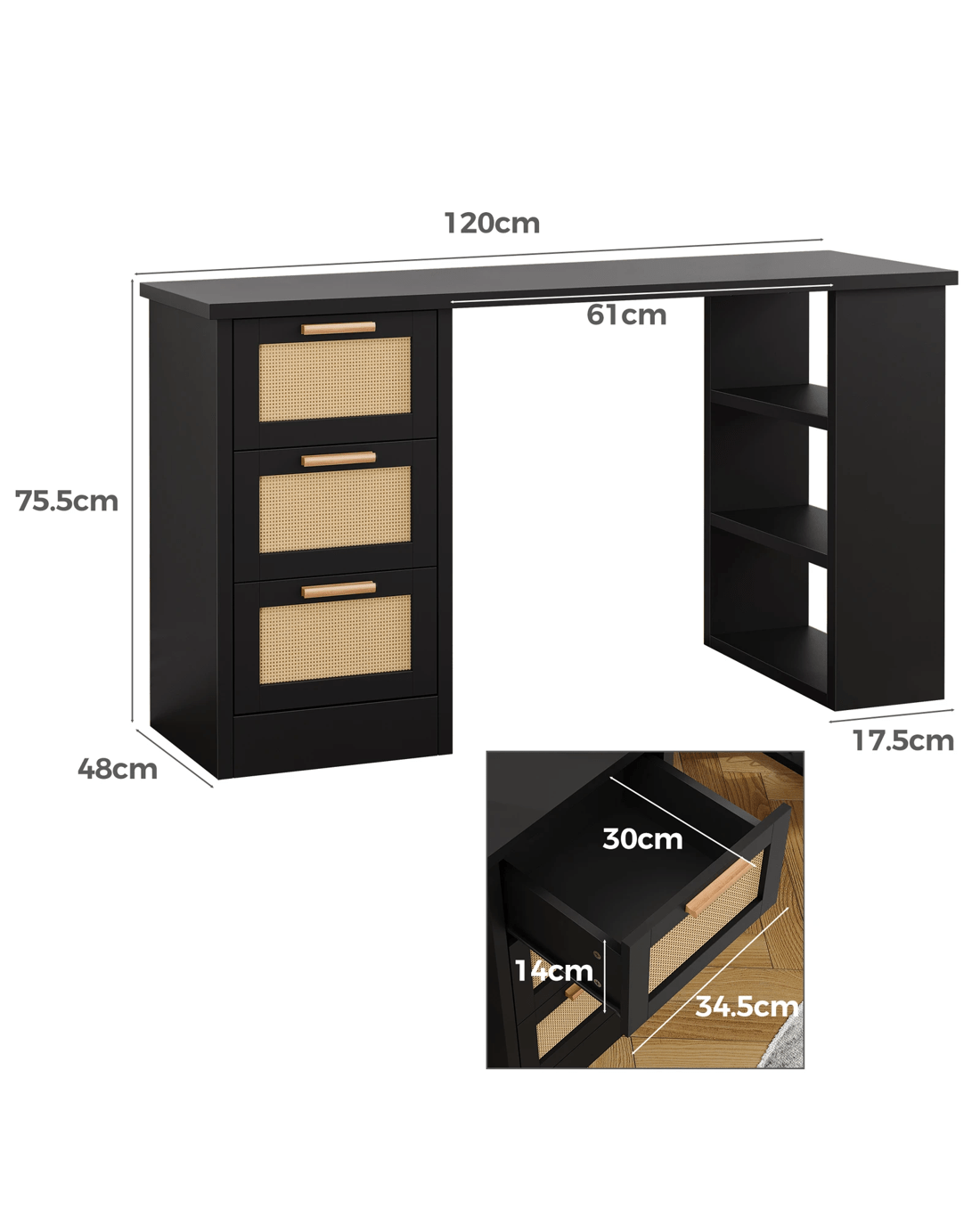 * 3 spacious drawers